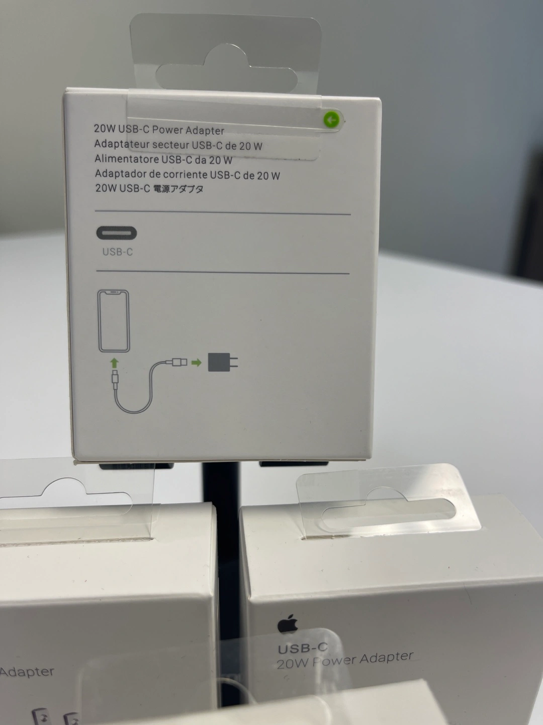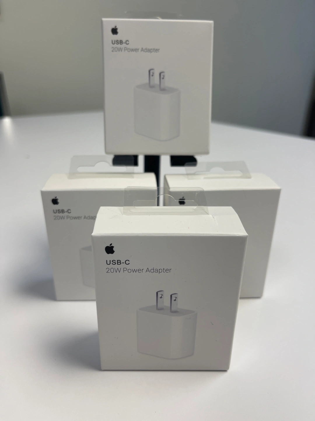 Four brand new, unopened. 20W USB-C Power Adapters. Perfect for charging your compatible devices. Fast and efficient charging. Good Results.. Charges all Smartphones 1 for 15 2 for 25 3 for 35 4 for 45