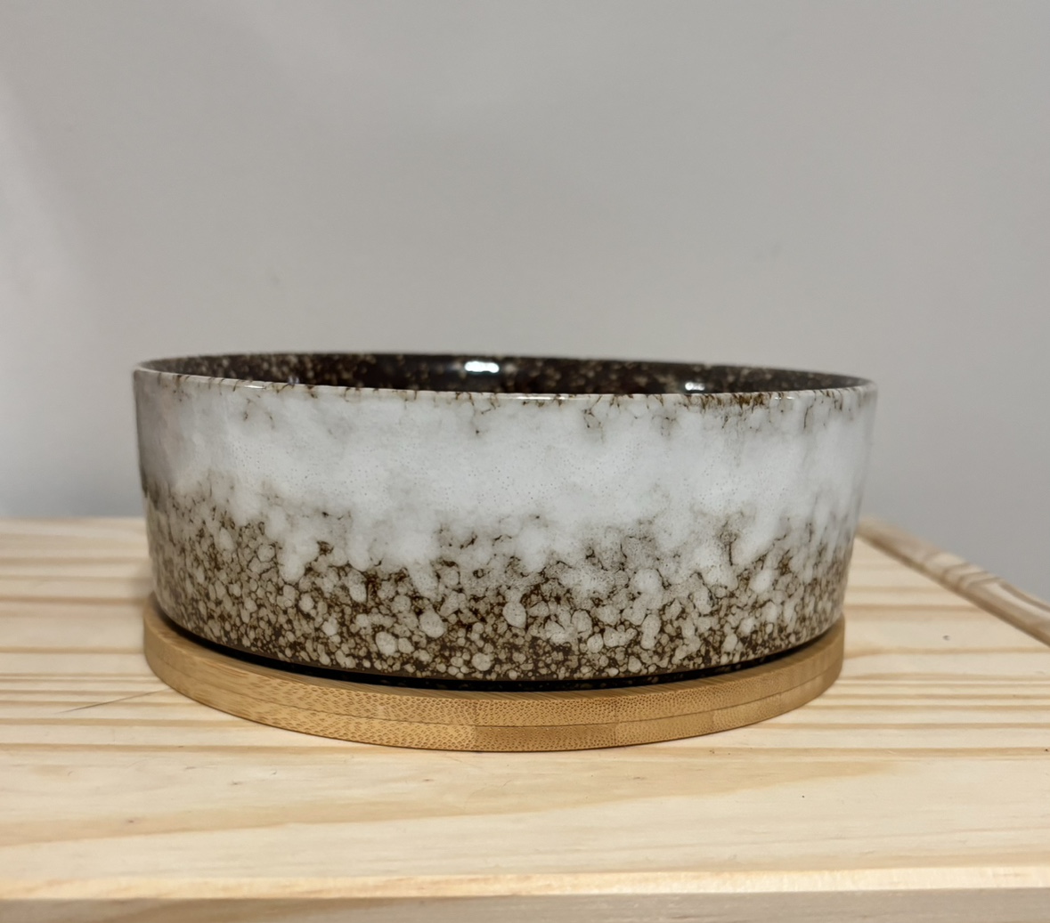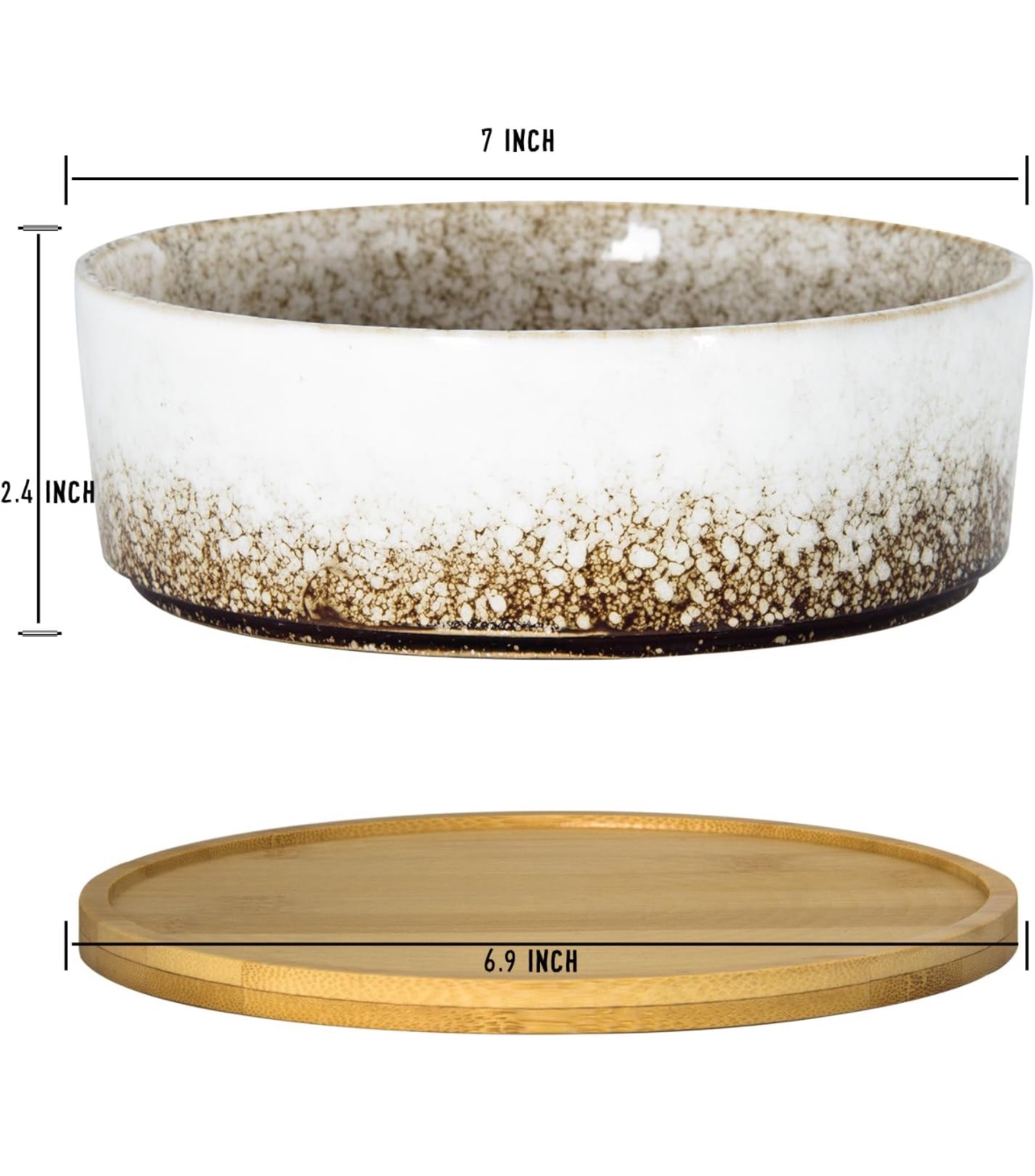 The ceramic succulent planter comes with a drained bamboo tray. The tray catches excess water and prevents it from pooling around the roots, there by preventing overwatering and root rot.