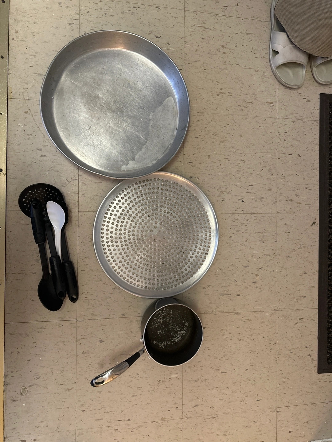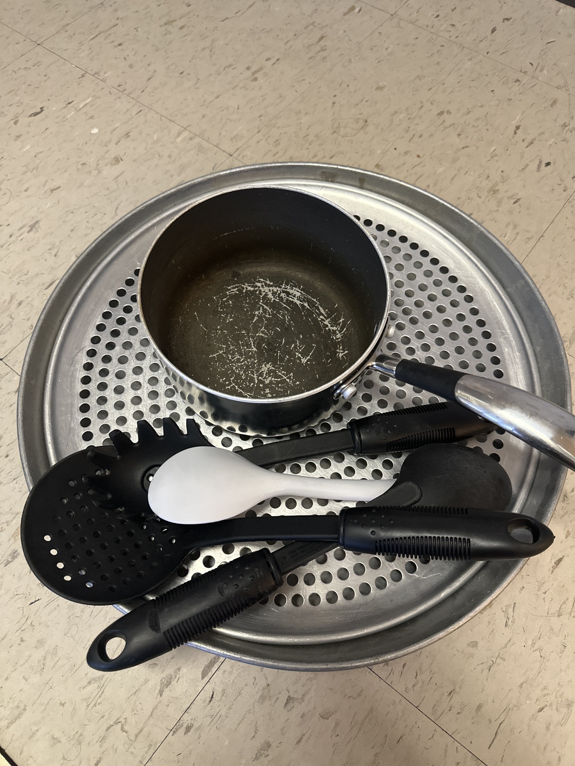 $7 for all: -pizza tray -large cooking dish -GIVEN AWAY**4 cooking utensils /spatulas, pasta server, slotted turner -GIVEN AWAY**small pot