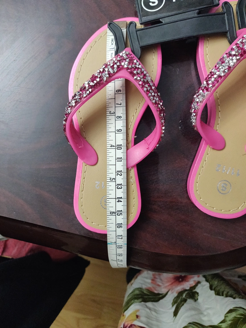 3 pairs kids sandals pi k and blue $ 8 each All 3 pairs ,$20. Sizes 1 pr. 6 2 prs. 5 Pi nk slippers size 11/12 Beach shoes Size 9/10 kids 9/10 Adults Gold slippers Size 9 Adults Brown Chaps slipper size 7/8 anyone $8 per pair