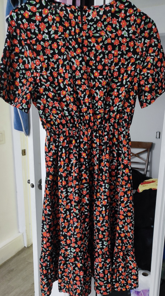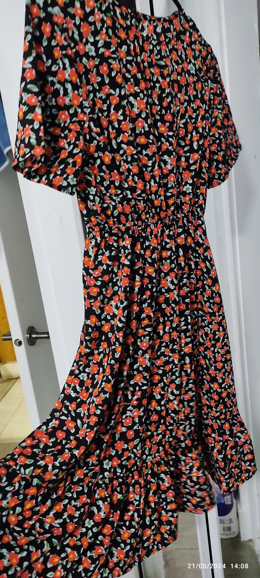 medium size one piece dress till knees. elastic on waist and looks like frock.