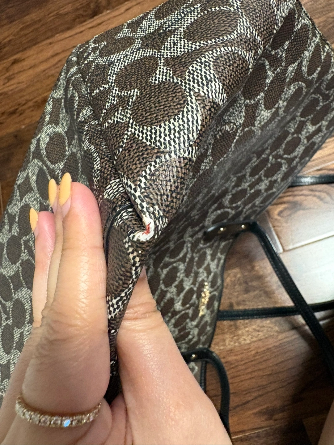 Coach tote bag is very spacious. Perfect for travel or office use. - leather - open tote - in good condition - the only flaws are the rubs on the bottom and watermarks stain inside - strap drop 9.5 inches 18 inches L x 11.5 H x 6 W