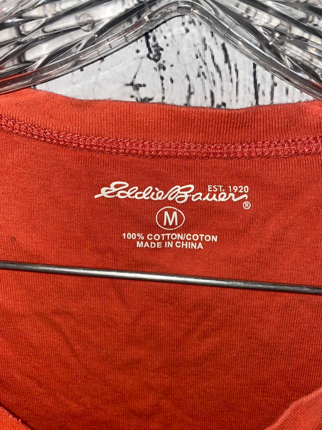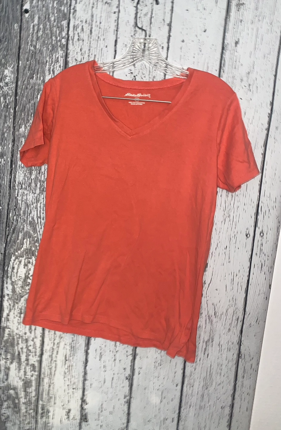 Eddie Bauer Tee Shirt Womens Medium Salmon Orange Coral V Neck Short Sleeve Casual Excellent Condition $10.00