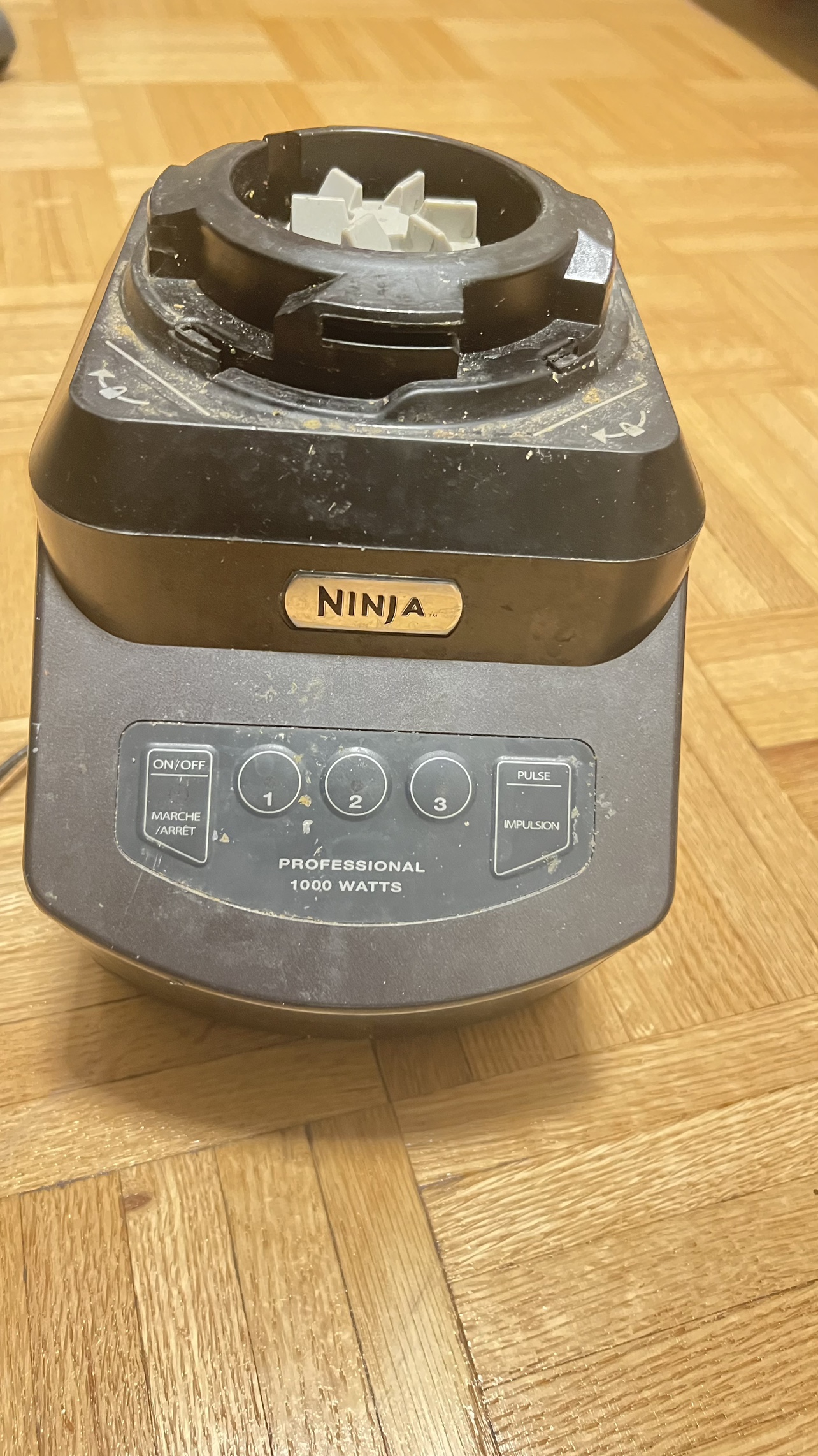 Ninja Professional Plus Blender 72oz base is fully functional Cracks on the jar but doesn’t make an issue Grinds well someone who in need can make use of it Pickup Only