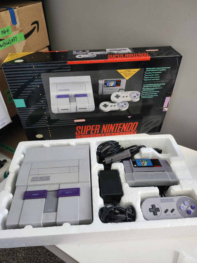 Super Nintendo Entertainment System WHAT YOU SEE IS WHAT YOU GET :) * Selling all our collections with confidence. * Guaranteed all items posted are in very good working condition •• Payments upon meet up or pick up Pick up location : 36 Andrea Rd Ajax ON L1S3V7 Meet up location : Pickering Mall For more info, kindly feel free to DM me. love love love ♡♡♡