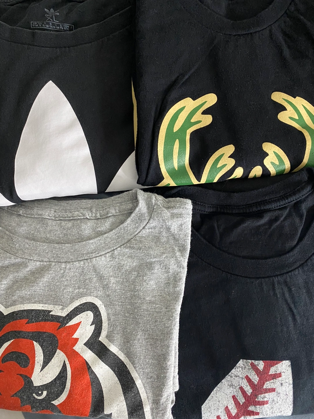ππ» In good condition. ππ» No stain. no ripping. ππ» bundle of 9 T-shirts from size L-XL β Only available for pick up. β Payment: Cash only β No Smoker & No Pet in the house. β NOTE: Please make sure to check the details posted. Like SIZE, brand, make, quality, etc. Can also check the images posted for basis to avoid ordering by mistake. Thanks and have a wonderful shopping β€οΈ