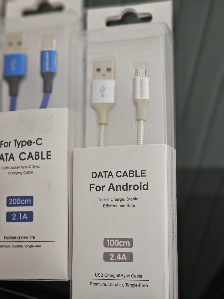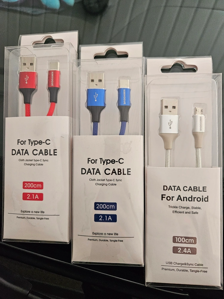 Brand new Cables in package 1: USB/type C $7 (2 meter) 2: USB/micro B $5 (1 meter) 3: iphone lightning $7 (1 meter) Buy 5 get 1 free (Same size only) pick up at 8717 159 St, Surrey Price is firm!