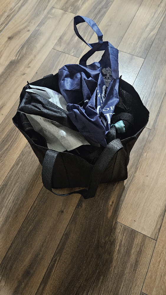 A collection of reusable bags from various sources built over the years. don't want to throw them out as they are perfectly fine but I have no need and space for them