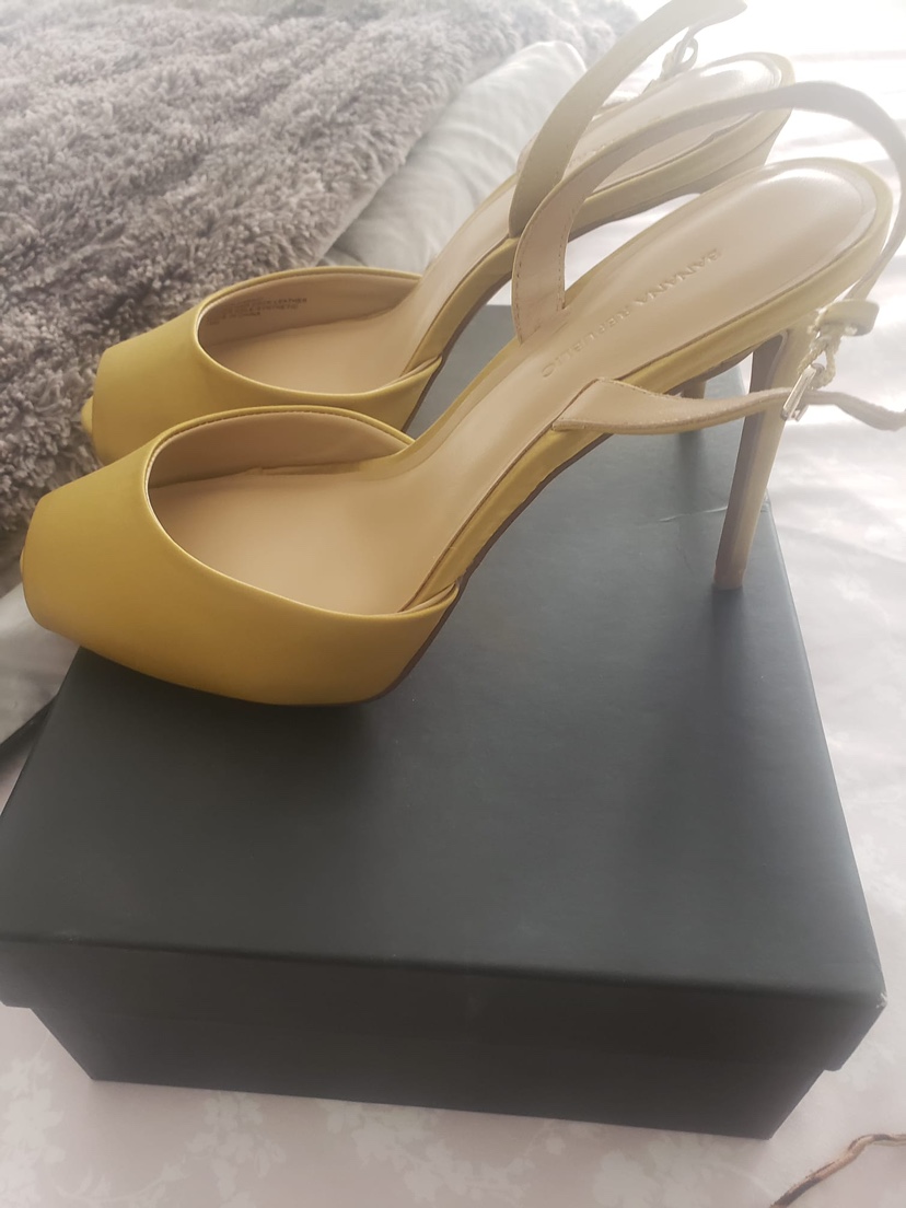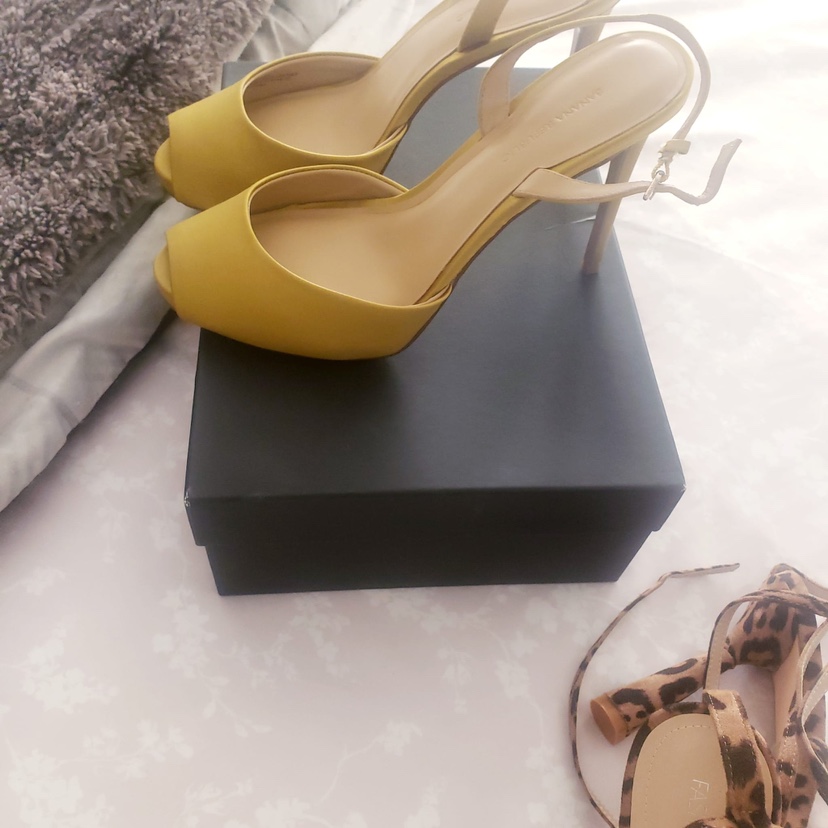 Brand new mustard 4-inch heels from Banana Republic, size 10, priced at $50