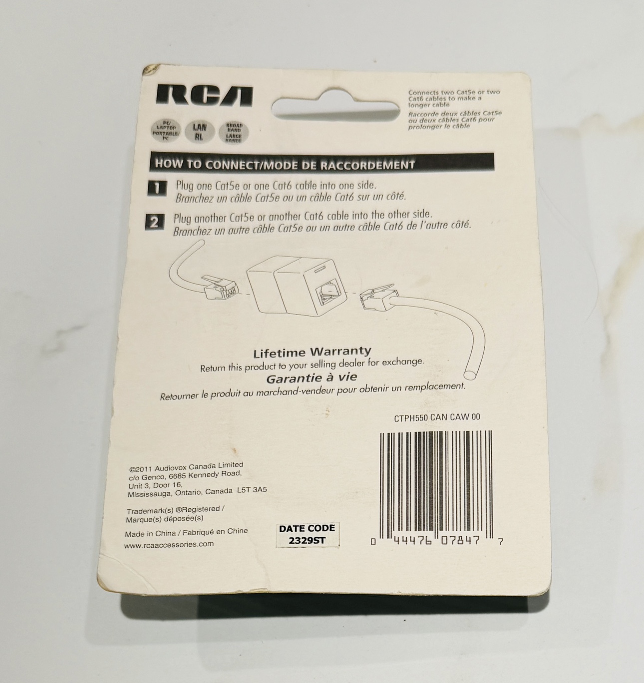 Connects two Cat5e or two. Cat6 cables to make a longer cable.