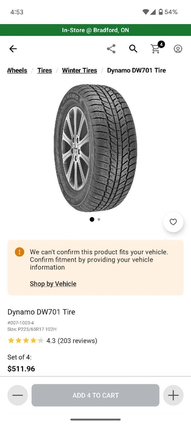 225/65R17 dynamo winter dw701 set. Tread between 30% to 60%. DOT 2420