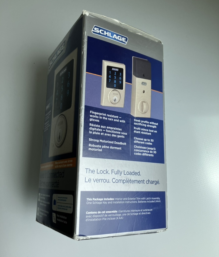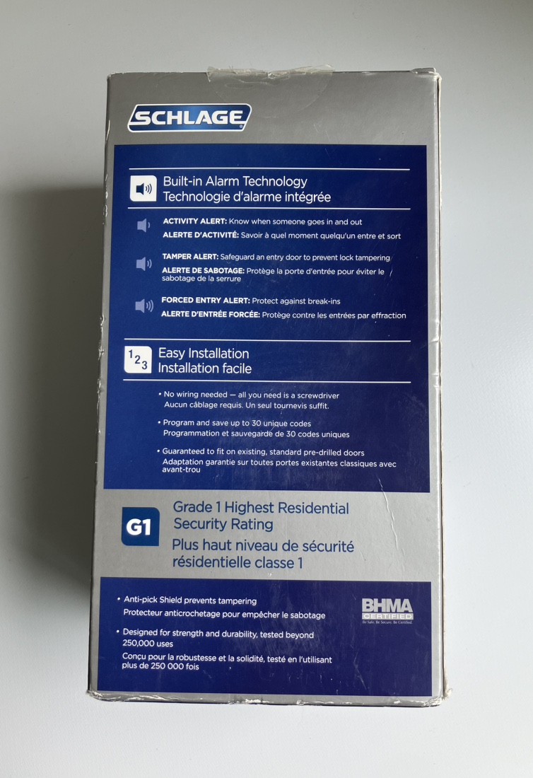 SCHLAGE BE469 CEN 619 smart lock Brand new in it’s original packaging Built in alarm technology Activity alert: know when someone goes in and out Tamper alert: safeguard an entry door to prevent lock tampering Forced entry alert: protect against break in