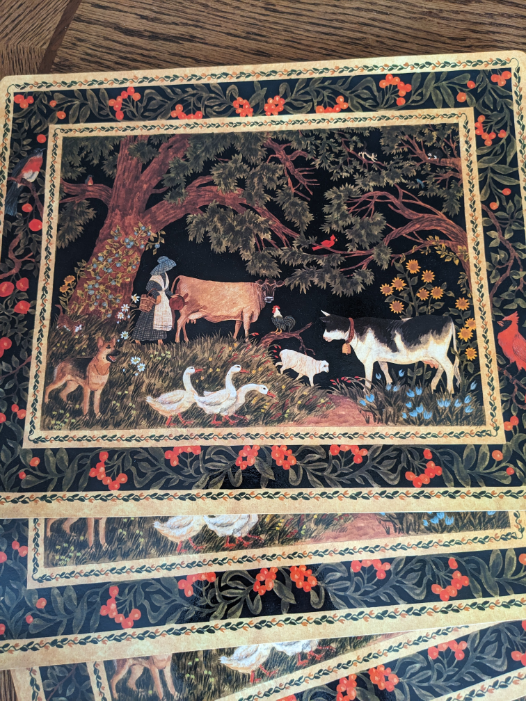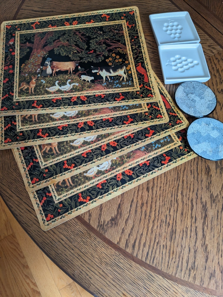 Four placemats, two coasters and two soap dishes, all for $4