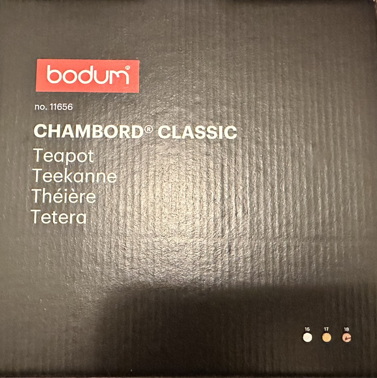 Brand new, never used Material: Copper, stainless steel, glass For your reference: https://www.bodum.com/ca/en/11656-18-chambord