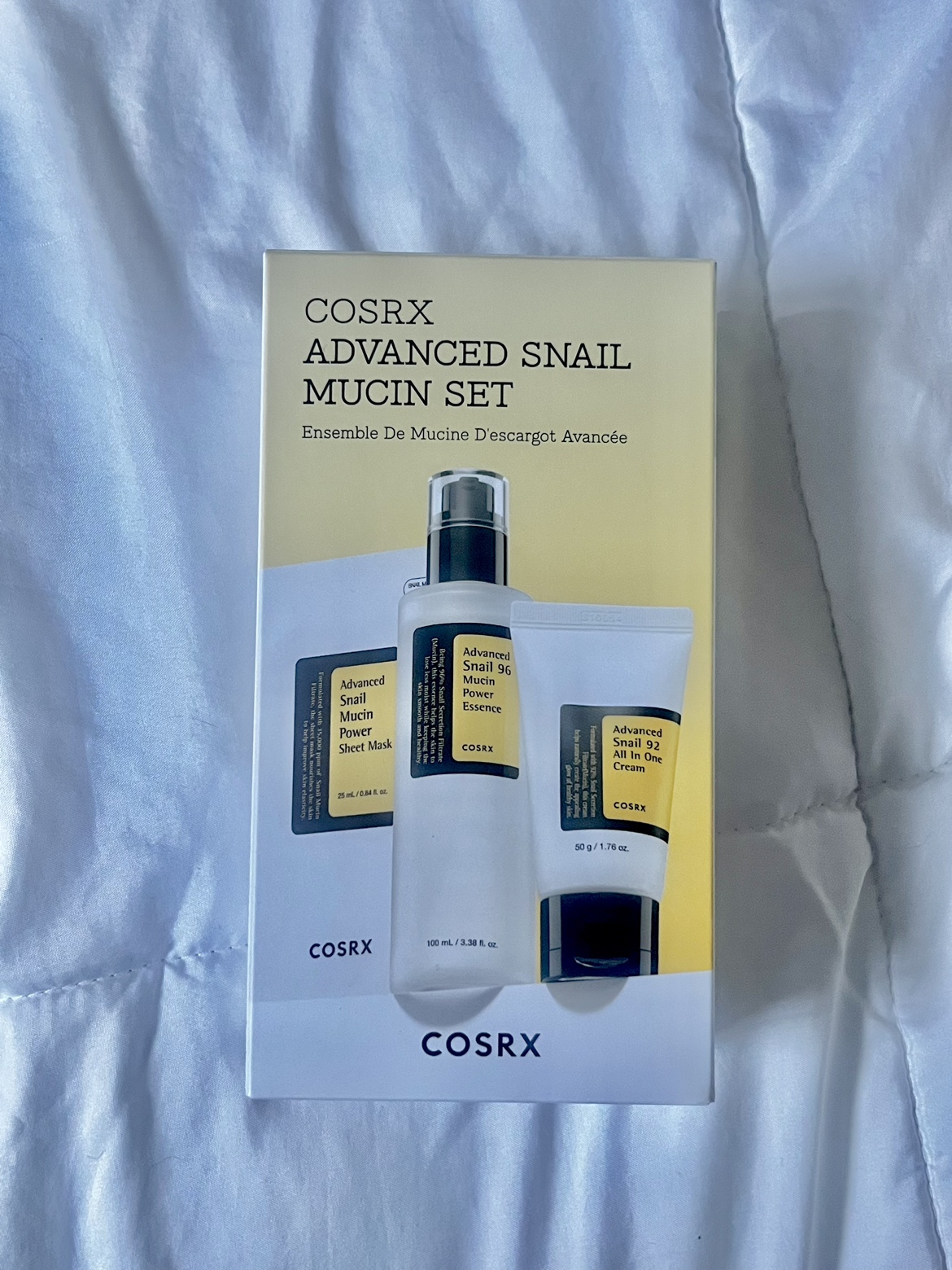 COSRX Advanced Snail Mucin Set •Brand new in box •great for skin elasticity, moisture and strengthening skin barrier •comes with three items: 1.Advanced Snail 96 Mucin Power Essence 2.Advanced Snail 92 All in One Cream 3.Advanced Snail Mucin Power Sheet Mask Pickup near North York Centre Or Stc
