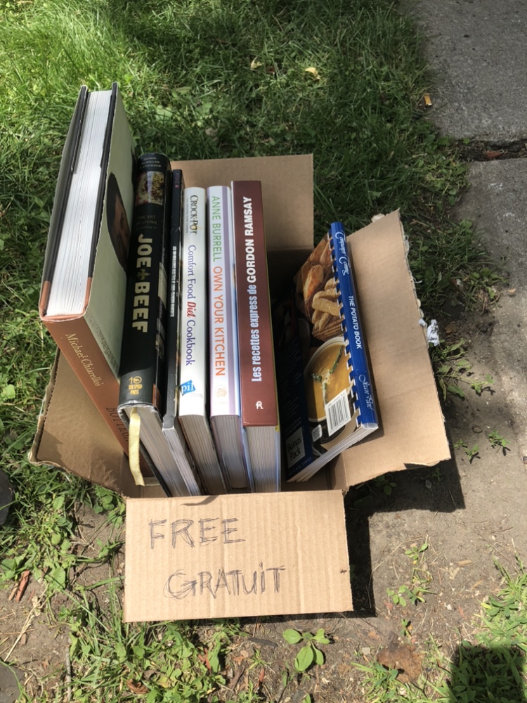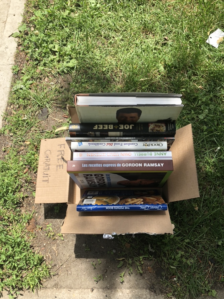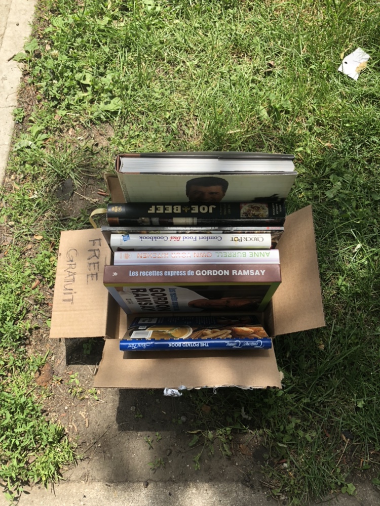 Box of assorted French/English cook books Front curb # 49 Langford Ave Bon appetite π§βπ³