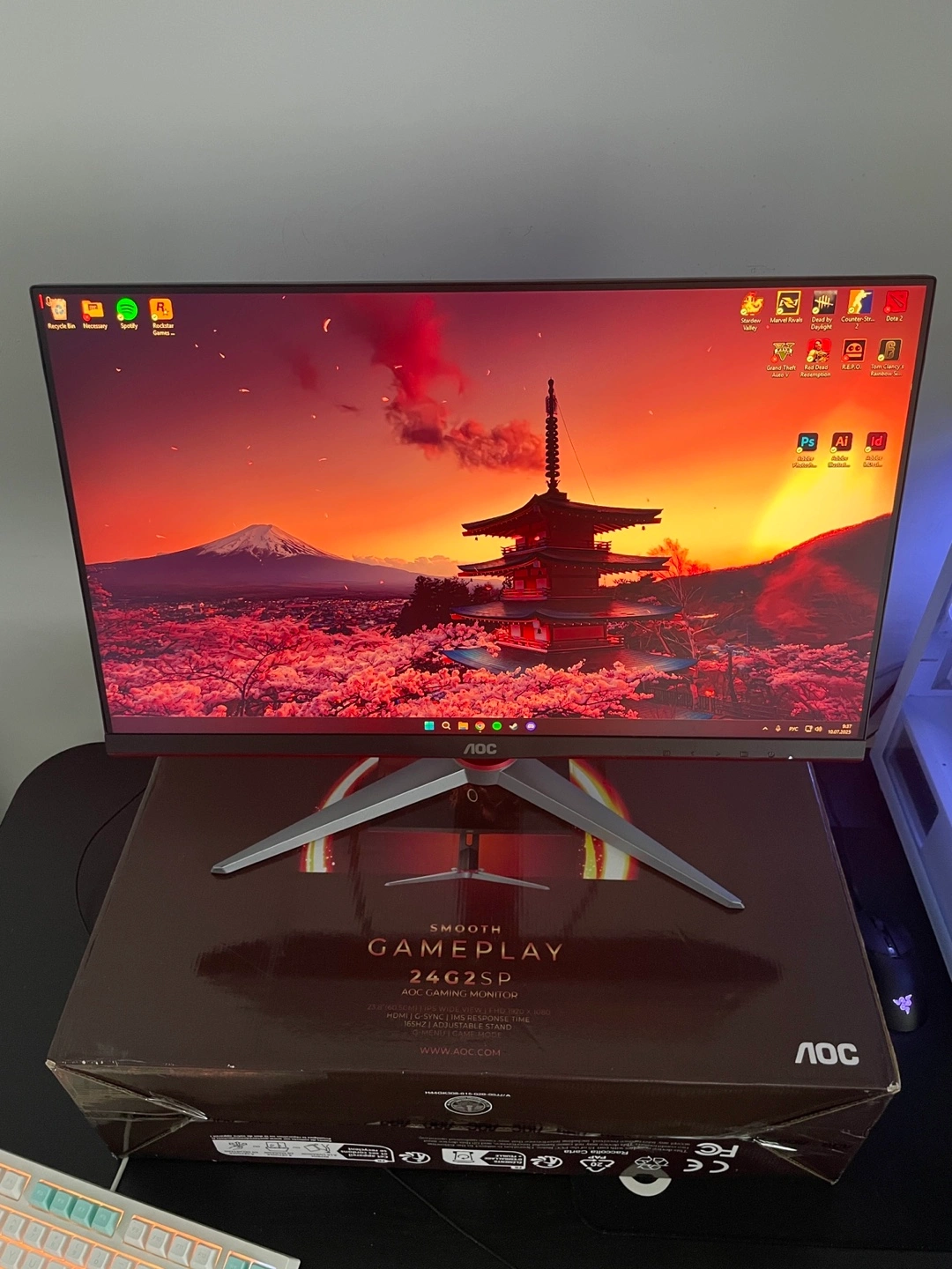 Selling my barely used 23.8 inch AOC 24G2SP gaming monitor with the original box. No dead pixels, the color is great, and the overall condition is basically new. It’s FullHD 1080p, has IPS matrix, 165Hz, 1ms response time, FreeSync Premium and many other features. The monitor is also height adjustable, tilt, swivel and pivot. It’s sold out everywhere. $150 firm, retails are $200+tax (if you can even find this monitor in stock) Pick up only. If the ad is up, it’s available.