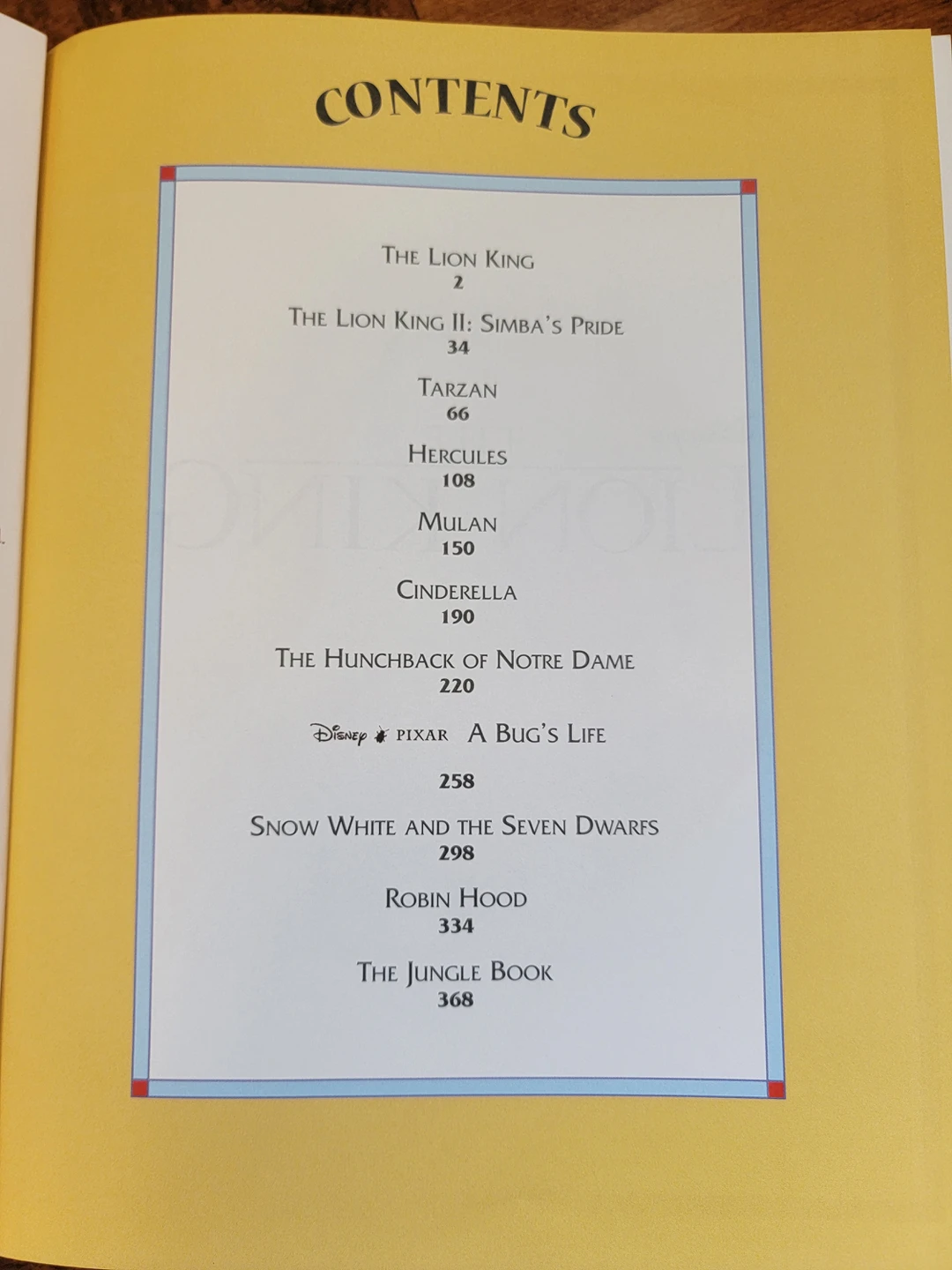 Great condition hardcover Disney book containing 11 beloved tales in 400 pages. Every page has vibrant pictures to keep readers engaged. Stories include: - The Lion King - The Lion King 2: Simba's Pride - Tarzan - Mulan - Cinderella - The Hunchback of Notre Dame - A Bug's Life - Snow White and the Seven Dwarfs - Robin Hood - The Jungle Book May deliver depending on where you are