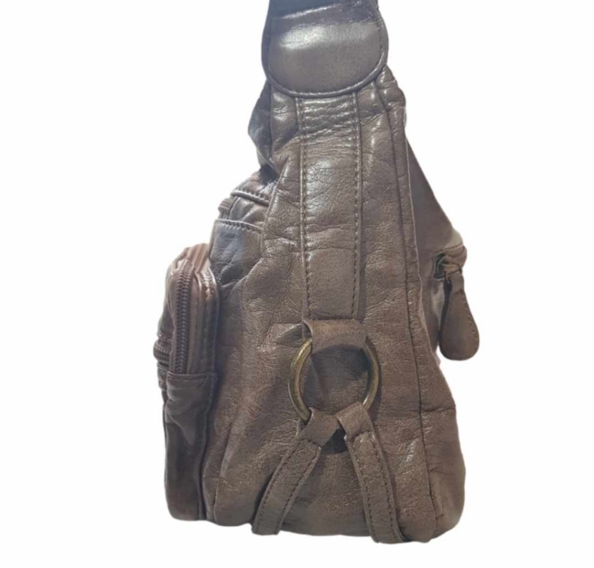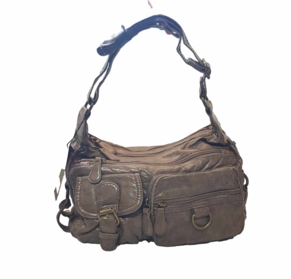 Angel Barcelo Crossbody Shoulder Bag Purse -Lots of Pockets -Adjustable Strap -Brown Taupe Approximate measurements: bottom 10" by 4", 7" high without handle. Pictured after the first is not me, I bought on poshmark Flat rate cash payment ! Meet at Hęm 377 Commercial Drive (the Vietnamese cafe)