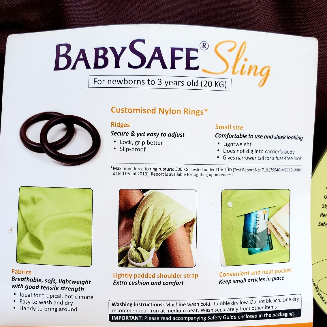 Keeps you hands free and the baby safe and snug. Perfect for newborn to the next 12 mths especially when the baby needs constant cuddling. The padded shoulder portion makes it comfortable to carry up to 20kg. Rayon fabric, cooling and breathable. Comes with demo DVD and user guide for 6 carrying styles. This was used 3 times at most. It's been thoroughly washed, cleaned and stored. (Smoke free pet free home) Available for pick up at Bayview Village