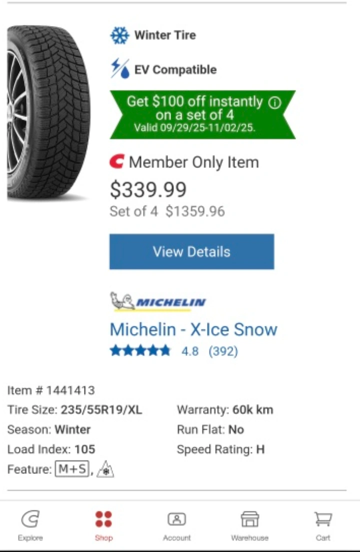 MICHELIN X-Ice Snow - Winter tire size 235/55R19. They're awesome for winter driving! The new ones will cost you over $1400, but these are practically new, only used for one season. Make me a reasonable offer.