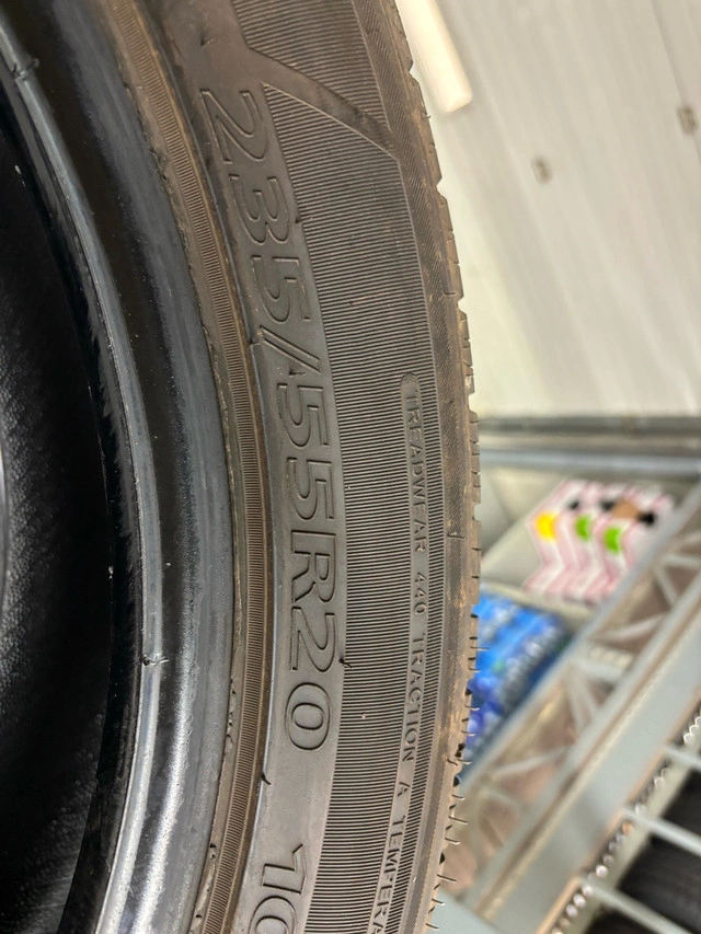 I'm selling a set of four used 235 55R20 all season tires. They are in excellent condition with a DOT of 2024 and have a little wear, as you can see from the photos. These tires could be perfect for someone needing a budget-friendly set. If this ad is still up, yes, the tires are still available!