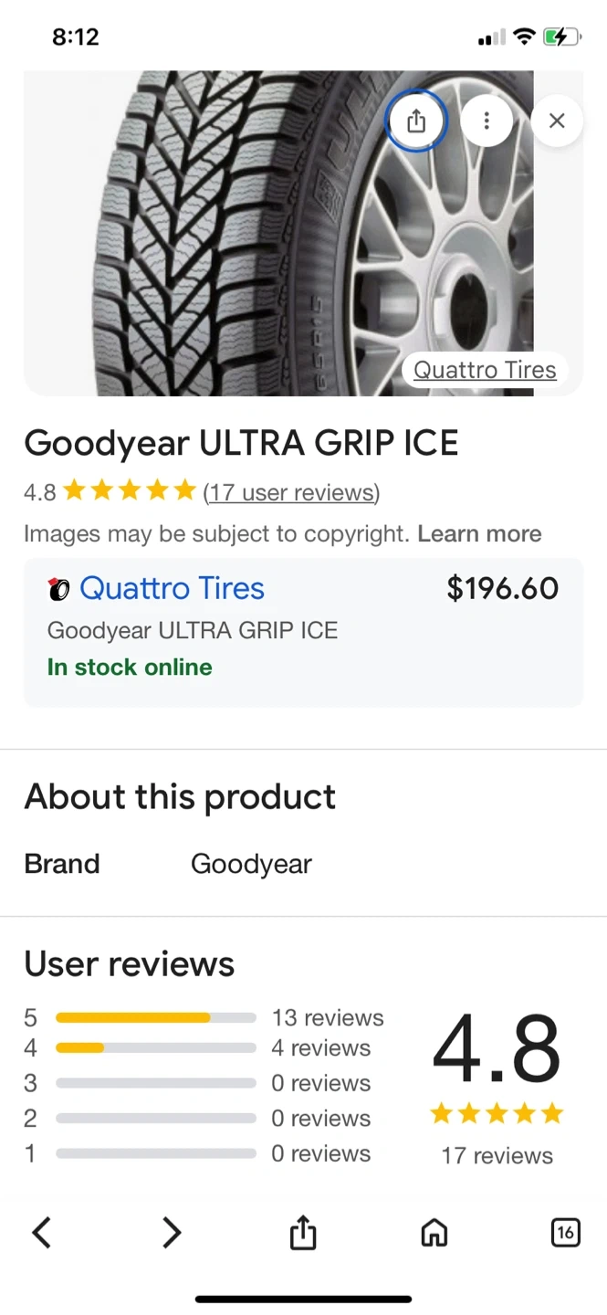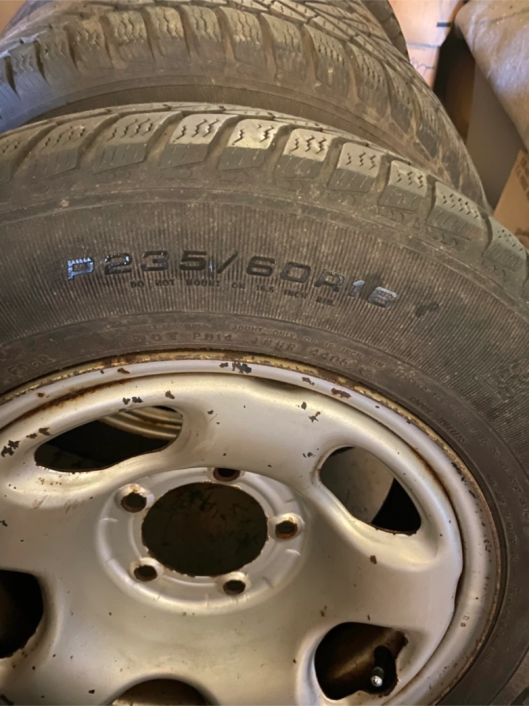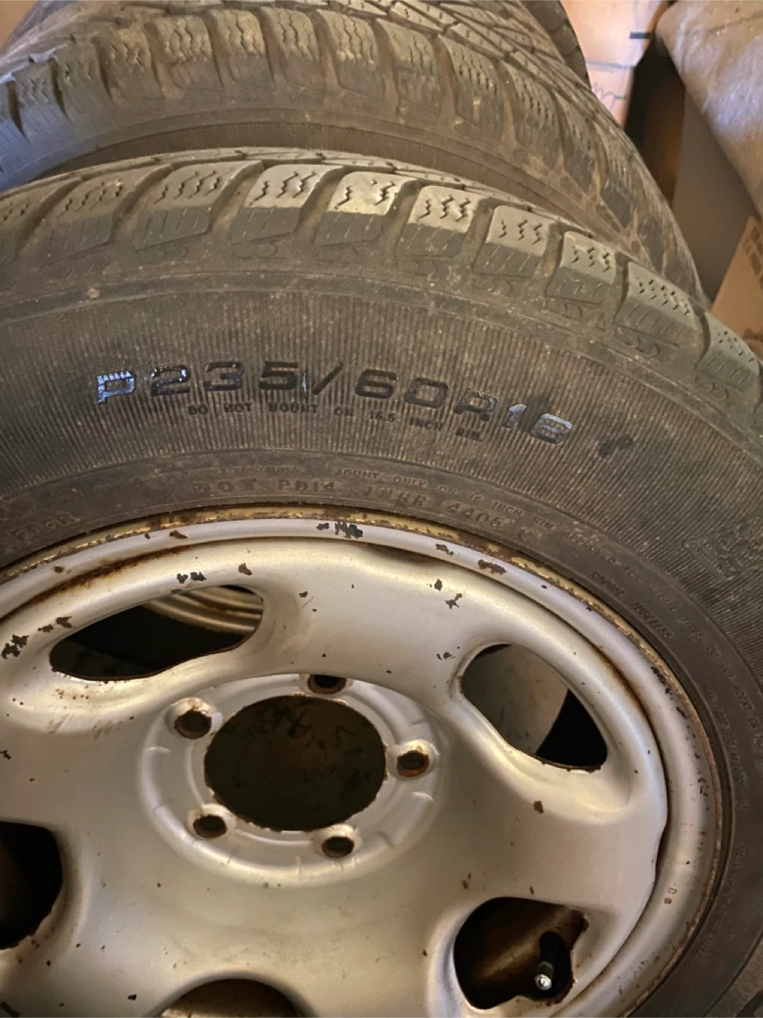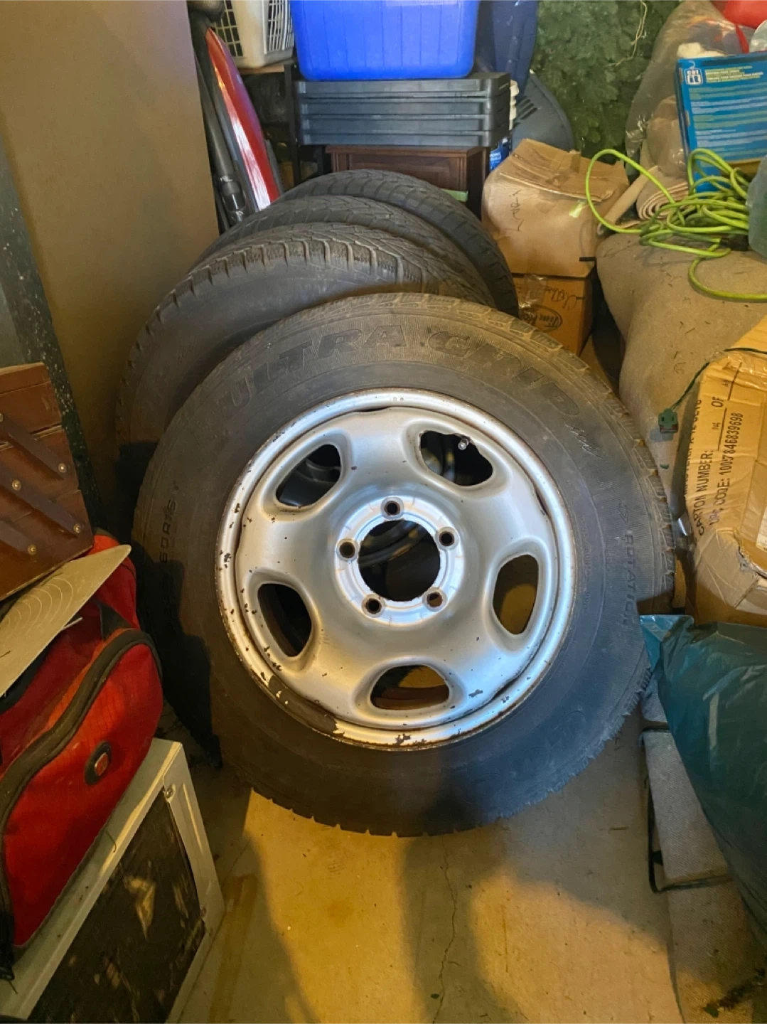 • Goodyear Ultra Grip Ice • 2 tires 8/32nds tread • 2 tires 6/32nds tread • mounted on 5 bolt pattern (5x114.3) steel rims • Hub Bore: 67.1 mm/2.64inches Very good condition … came off a Hyundai Tuscon