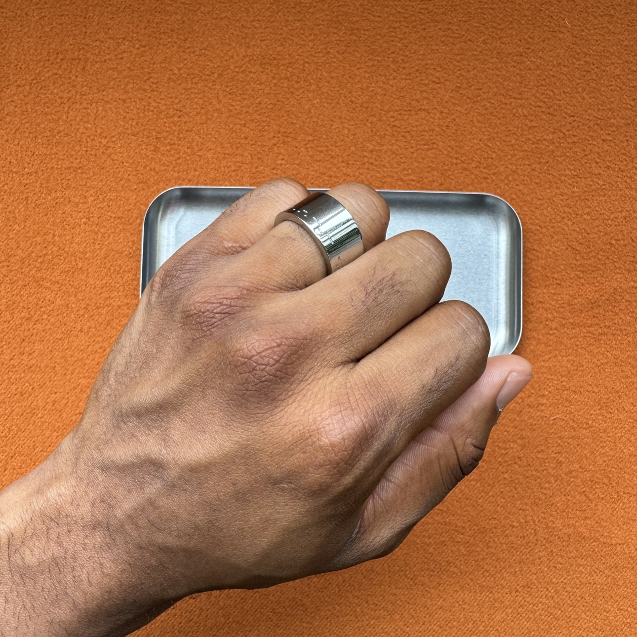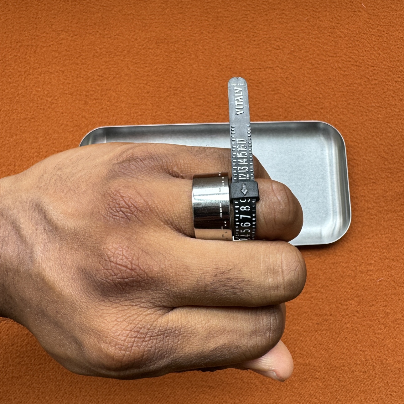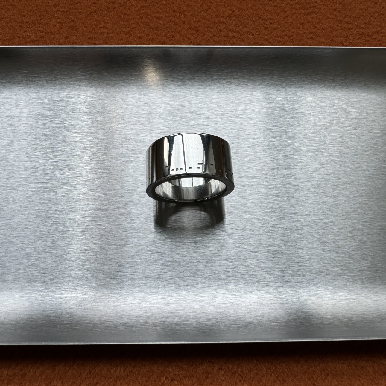 Stainless steel. Loved this ring, but unfortunately it no longer fits my fingers. Time for it to find a new home! Size 9 CONDITION: LIKE NEW/ EXCELLENT ** if listing is still up the item is available ALL SALES ARE FINAL PICK UP ONLY LOCATION: STUDIO HOMME ( HEART OF CHINATOWN ) Have a lovely day!