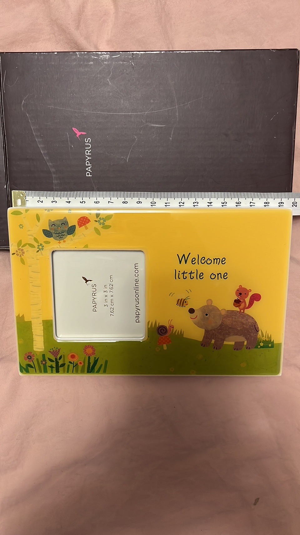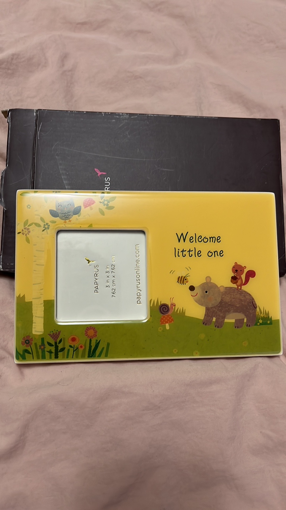Papyrus Picture Frame Holds photo sized 3”x3” / 7.62cm x 7.62cm Comes with box, box has some scratches as shown in photo Picture Frame for Baby, newborn, new baby, baby shower, infant #freecycle