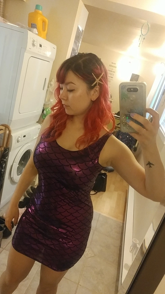 Beautiful purple/magenta mermaid dress. Slinky fabric, short. Fits S-M Only worn twice. Swipe for mod shot