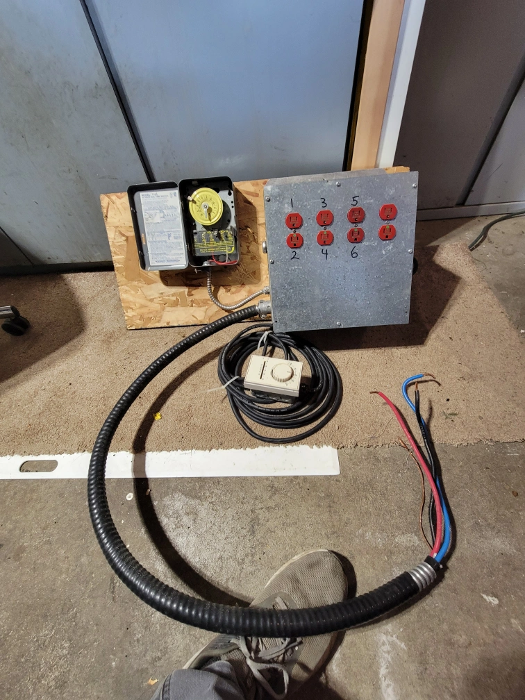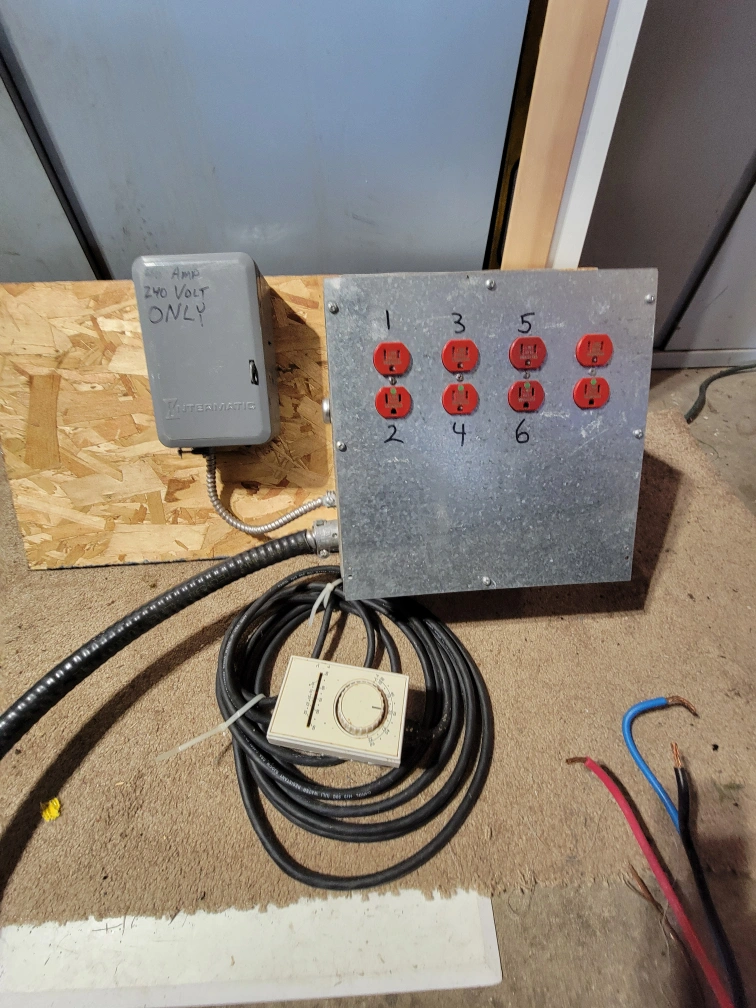 Selling an Intermatic 240 Volt power control panel. It has six outlets and a timer. Great for controlling power to multiple devices such as indoor gardens or costruction sites.