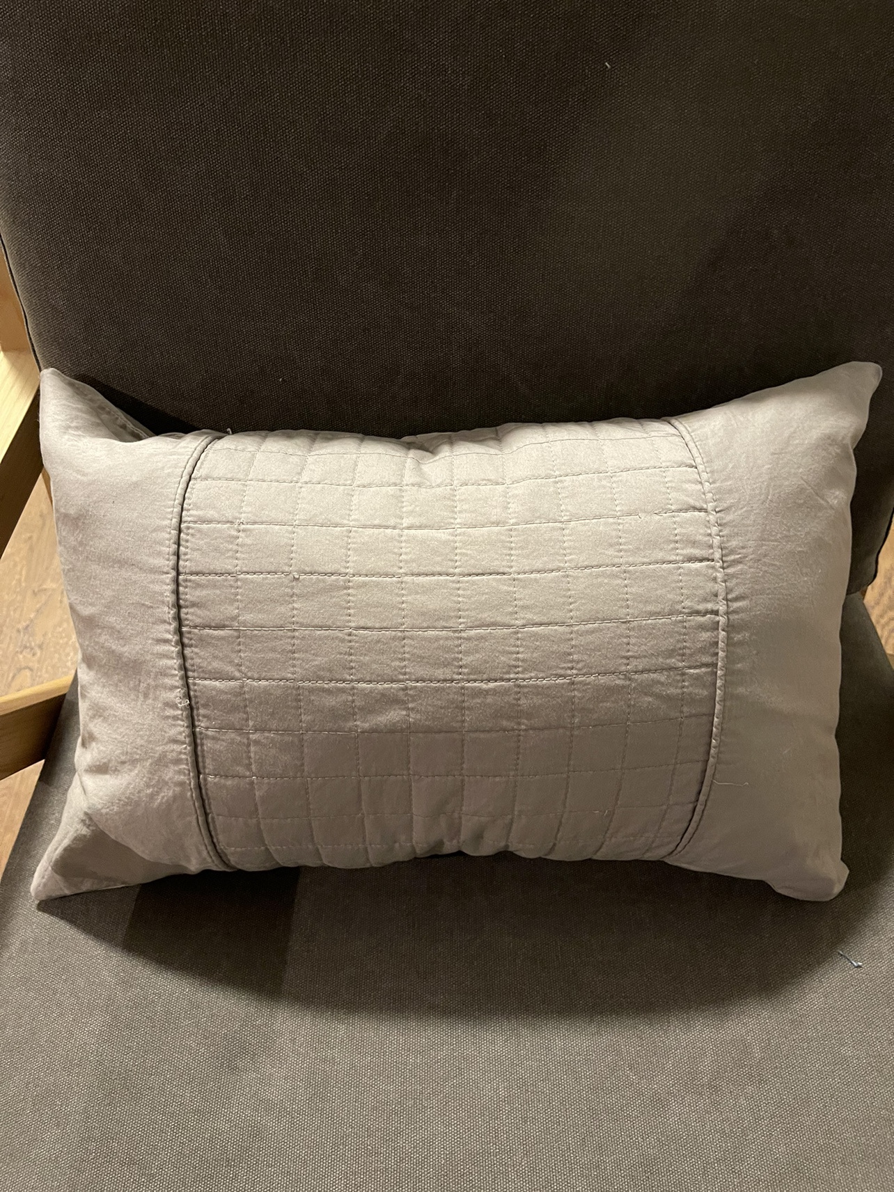 Hotel five star collection Sold at linen chest Silver/grey colour Cover: 100% cotton Fill: 100% polyester Square quilted 13" x 20" / 33 cm x 50.8 cm Like new. Purchased late 2023, declutterring.