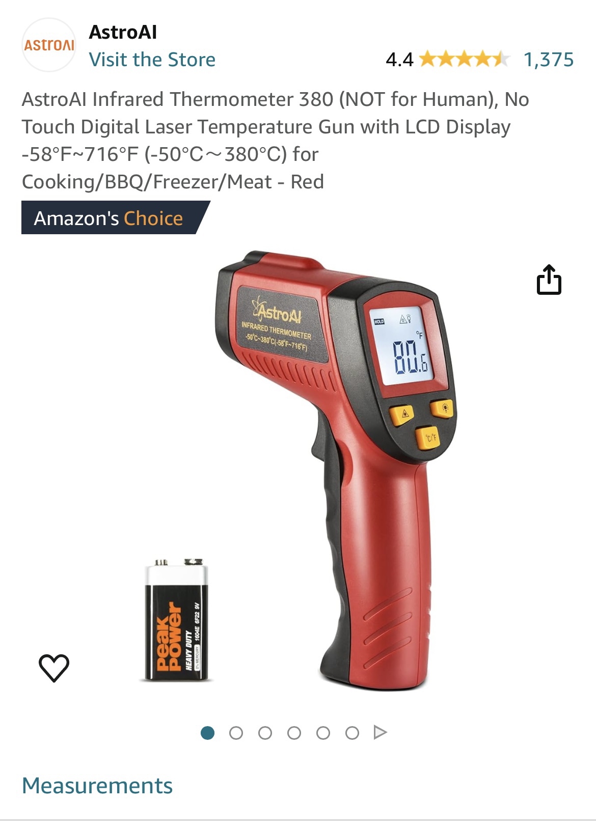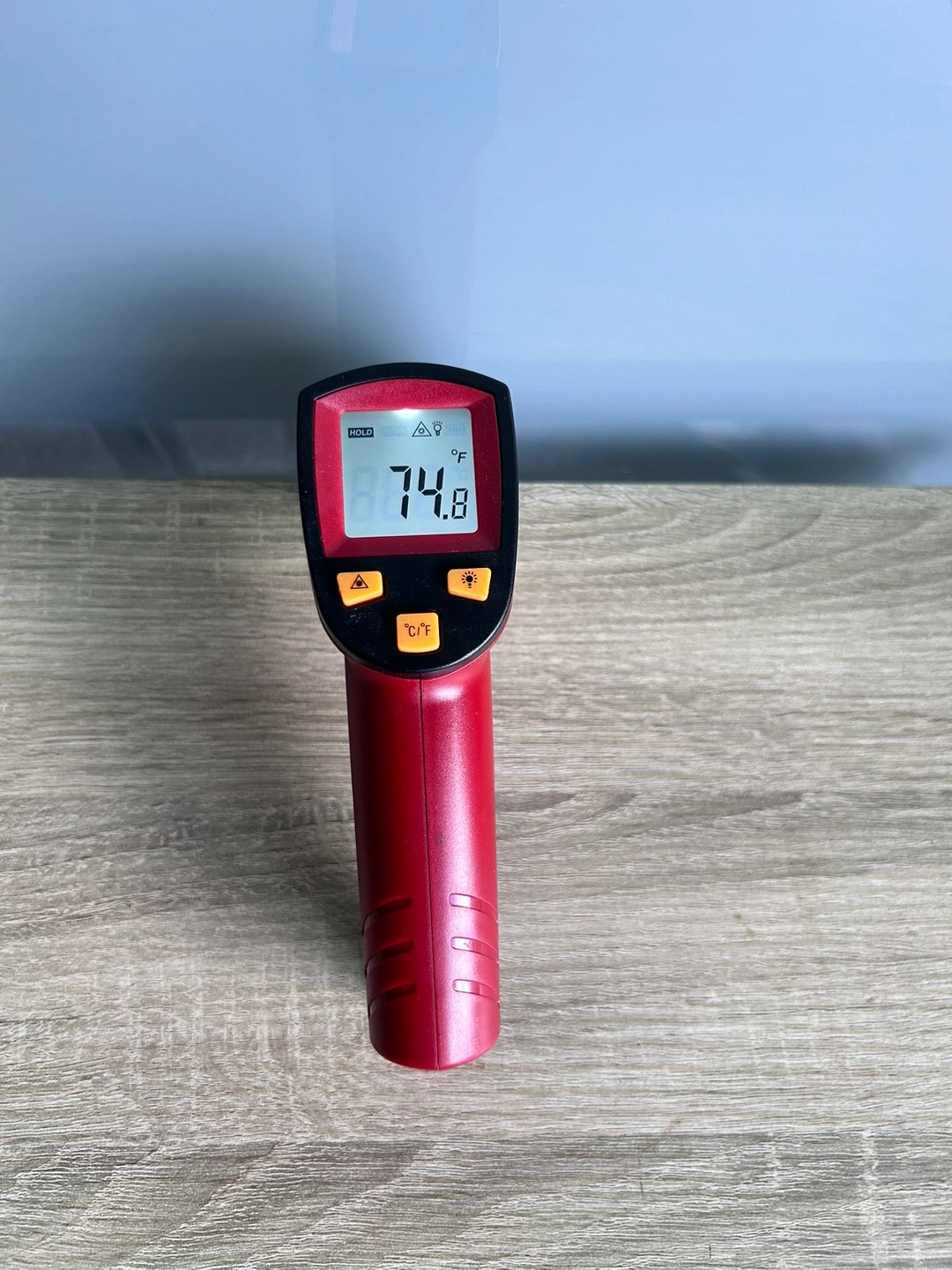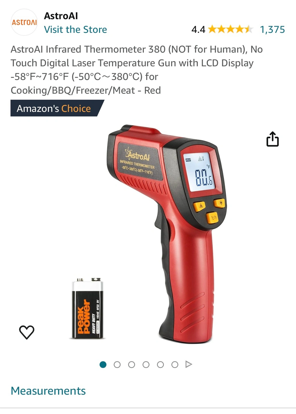 ****MSG FOR VIDEO OF IT WORKING**** USES •Utilize this infrared thermometer gun as a Cooking Food thermometer, BBQ, Meat thermometer, Pool thermometer, Pizza Oven thermometer, Oil thermometer, Automotive thermometer, and more. •A built in Laser gives you the precision to spot on the exact space you want to measure. •White backlight is brighter than other colors; Large Backlit LCD display for visibility in dimly light areas. •Automatically shuts off in 7 seconds to save the power and features a low battery indicator so you never accidentally run out of juice. VERSATILE DESIGN •This Infrared thermometer with innovative Technology can be used for both daily and industrial temperature measurements, such as cooking, performing auto/motor maintenance, barbequing, refrigeration, steel, home/commercial repairs, commercial heating, air conditioning, and so on. It is the ideal gift for women providing a better-assisted living every day. INCREASED FUNCTIONS •It is easier to use with upgraded designs like a Data Hold, LCD Backlit Screen, and Easy Fahrenheit/Celsius Switch. LCD backlight helps you view the temperatures even in the dark. Battery saving 7-second auto-off so it won't drain your battery even if you forget to turn it off. HIGH ACCURACY •The distance-to-spot ratio is 12: 1, meaning it can accurately measure temperatures from greater distances compared to most other Thermometers. Combining the advanced technology, this instrument reads values of high accuracy up to ±1% in only 0.9s. Other data related: Resolution: 0.1℃ or 0.1℉, Response Time:0.5s. TARGET QUICKER •An integrated laser assists in better locating and getting the temperature within 0.5s. It can measure surface temperature ranging from -58℉~716℉ / -50℃~380℃, temperature unit changed through the ℃/℉ selection button.