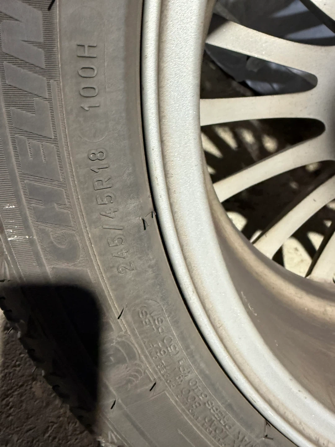 Selling a Michelin winter tires, size 245/45R18, on OEM BMW rims The tire has the DOT code H1 B7 01DX 4419.