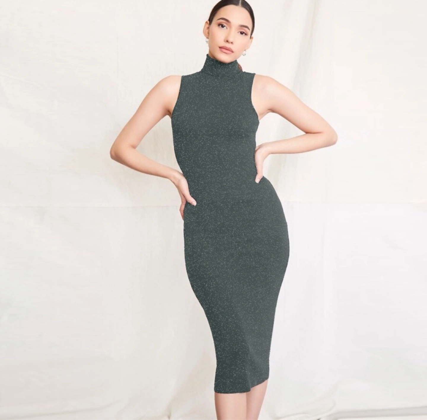 This elegant gray sleeveless mock neck bodycon dress is perfect for any occasion. The back cut-out and fitted style makes the dress look sexy and sophisticated. Layer up with a cardigan or jacket for a casual look. Perfect for spring, summer, autumn or winter. Wear for a party, work or school.