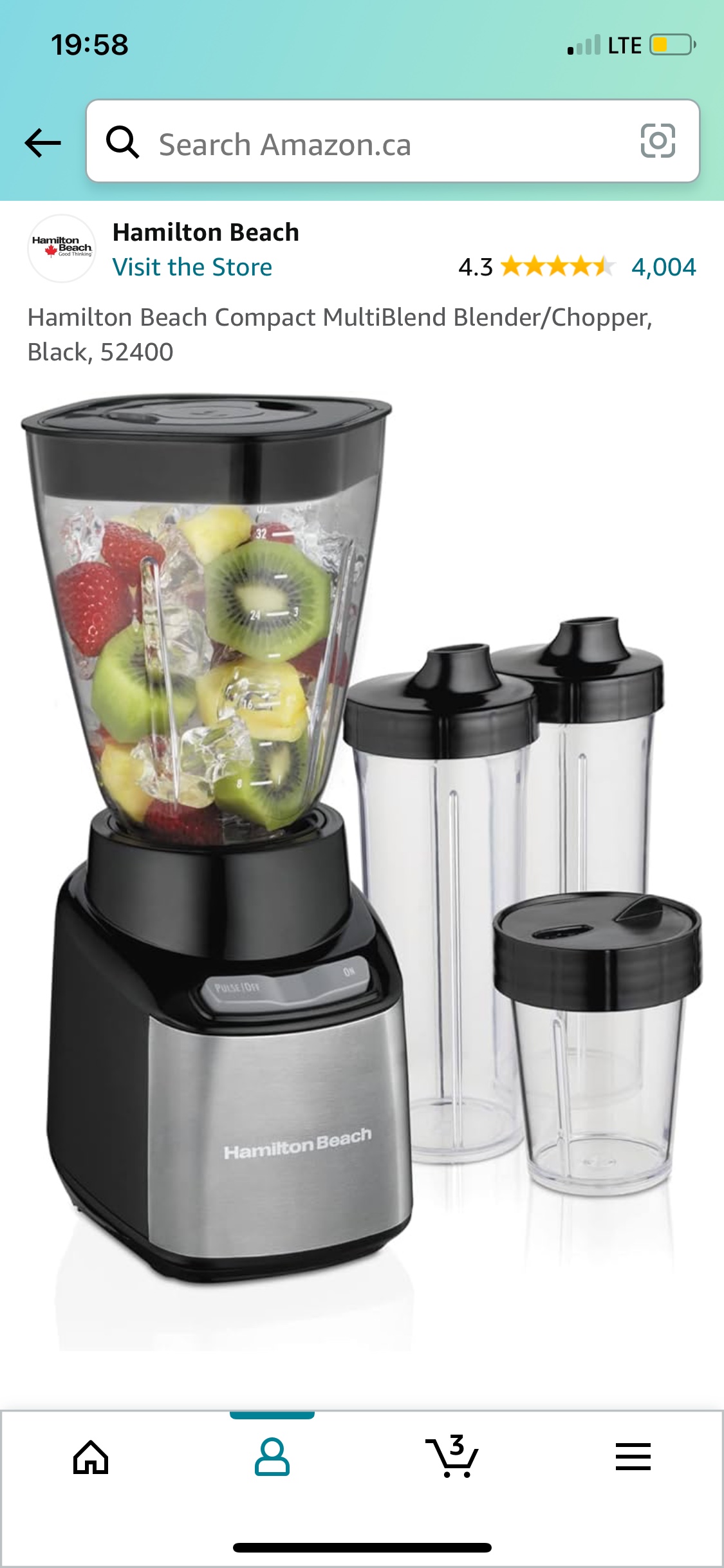 Hamilton Beach Compact MultiBlend Blender/Chopper, Black, 52400 Barely used for making smoothies only Perfectly working Non-negotiable