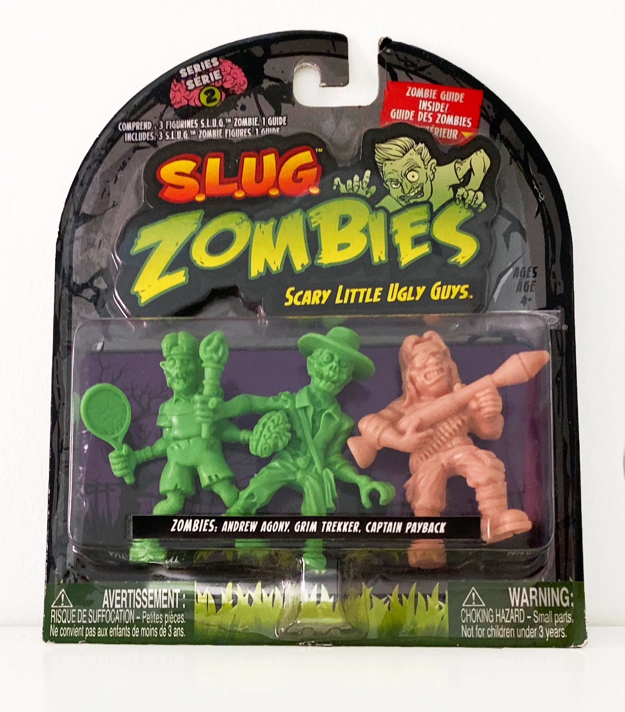 S.L.U.G. Zombies Series 2 Set of 4 New Packs (Complete Set) S.L.U.G. Zombies - Scary Little Ugly Guys. 3 Figurines S.L.U.G. Zombies in each Pack. PACK 1: (STU B’ YOU) (MASH - UP) (GATOR JONES). PACK 2: (MACHO MANGLER) (FLESH-EATIN’ PHIL) (BUCK WILD). PACK3: (ANDREW AGONY) (GRIM TREKKER) (CAPTAIN PAYBACK). PACK4: (MR. JANGLES) (CLEOPATRA COMMIN'ATCHA) (BLAZIN’BASEL). Pickup: Markham, ( 4467 Major Mackenzie Dr E, Markham, ON L6C 0M4) Pickup: Thursday , Friday and Saturday (9-00 PM to 1:00 Am) King St West and Portland St.