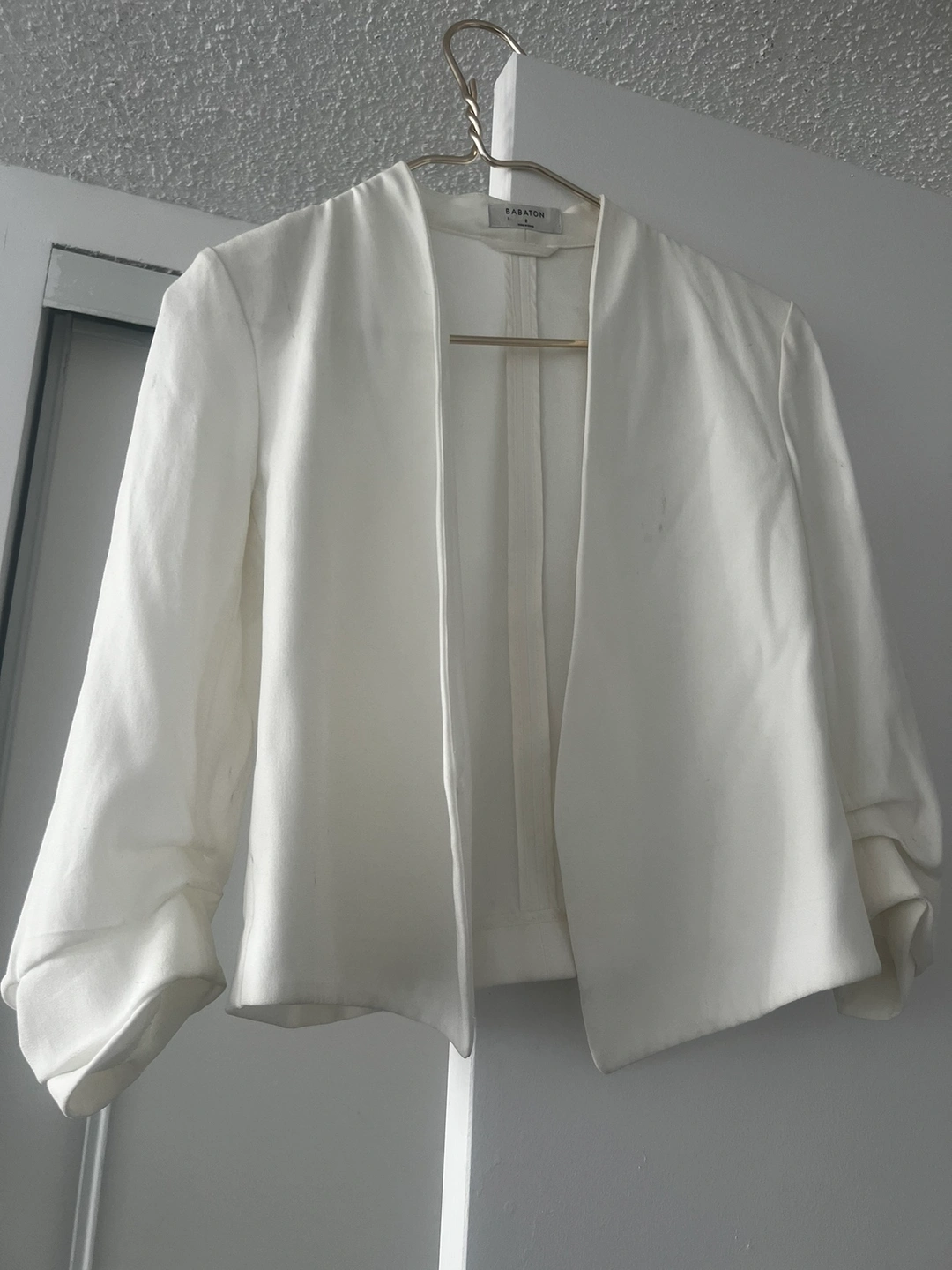In good condition. Great for the summer evenings. Paid: $88+ Pick up only Keele and Eglinton or Yorkdale Mall Tags: quick sale, Aritzia, Babaton, moving sale, white blazer