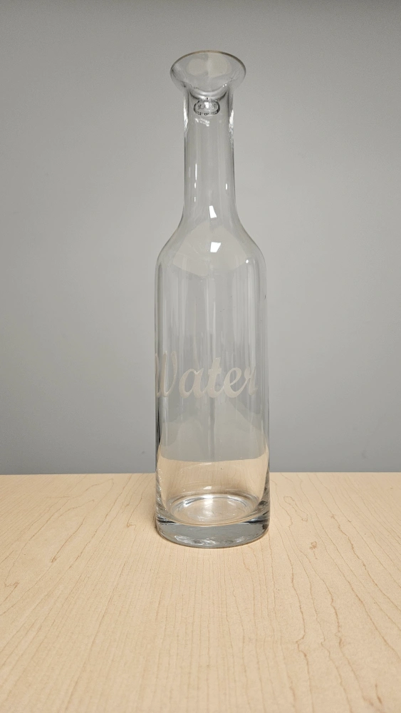Tall glass carafe/decanter, can also be used as a vase. Capacity 1.3 L https://www.amazon.ca/Abbott-Collection-Glass-water-Carafe/dp/B00BUUDPHO PICK-UP TIMES Weekdays only — during the day and some nights.