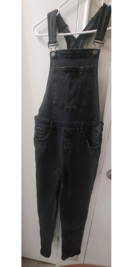 -Stretchy jeans Overalls w/ real pockets in front and back.
