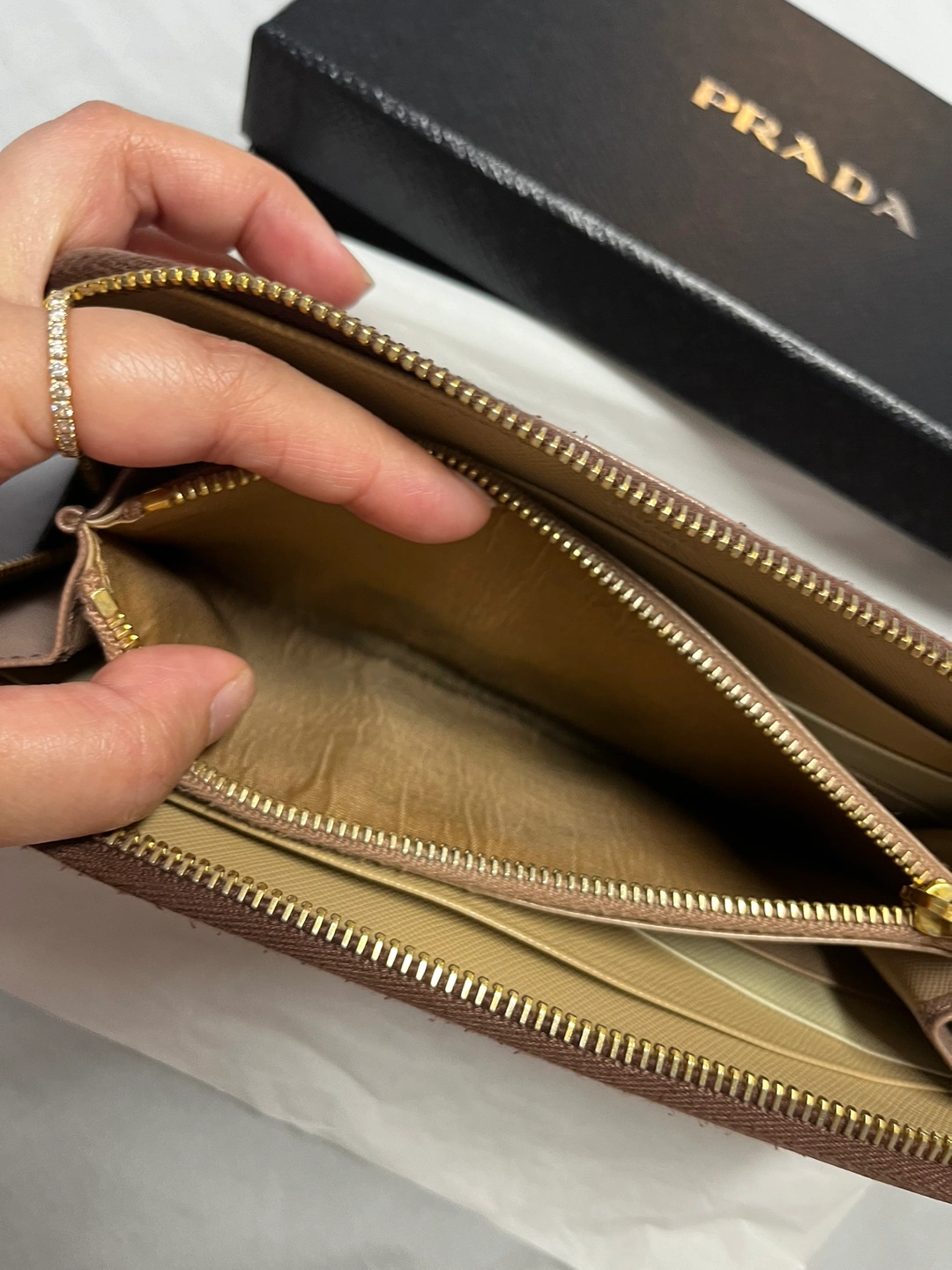 Prada Long Wallet in good condition with signs of usage and some leather discoloration. Made in Italy Comes with box Please review pictures and video carefully