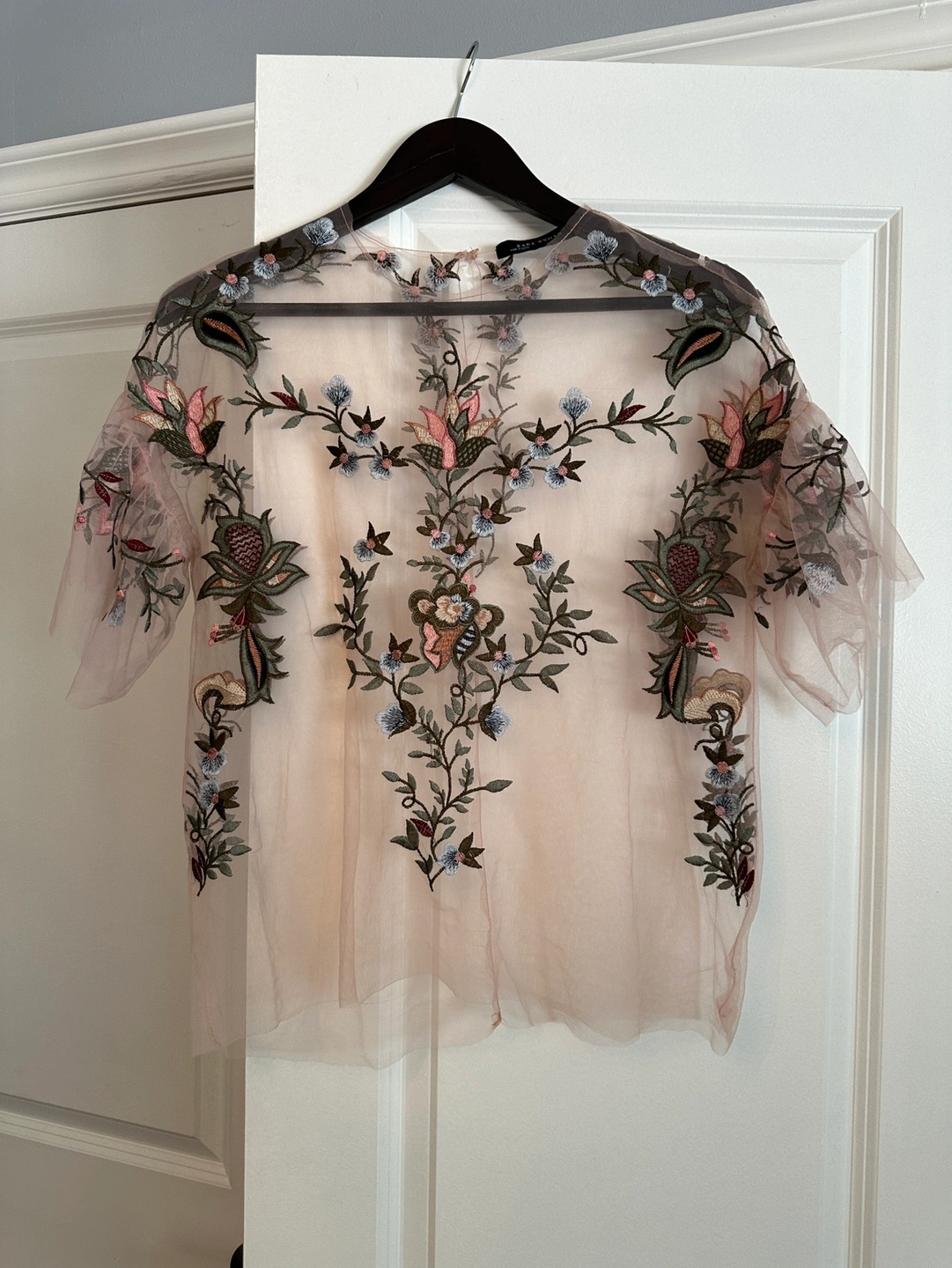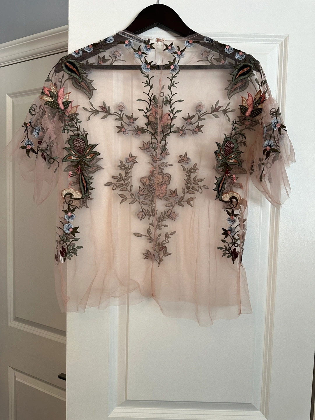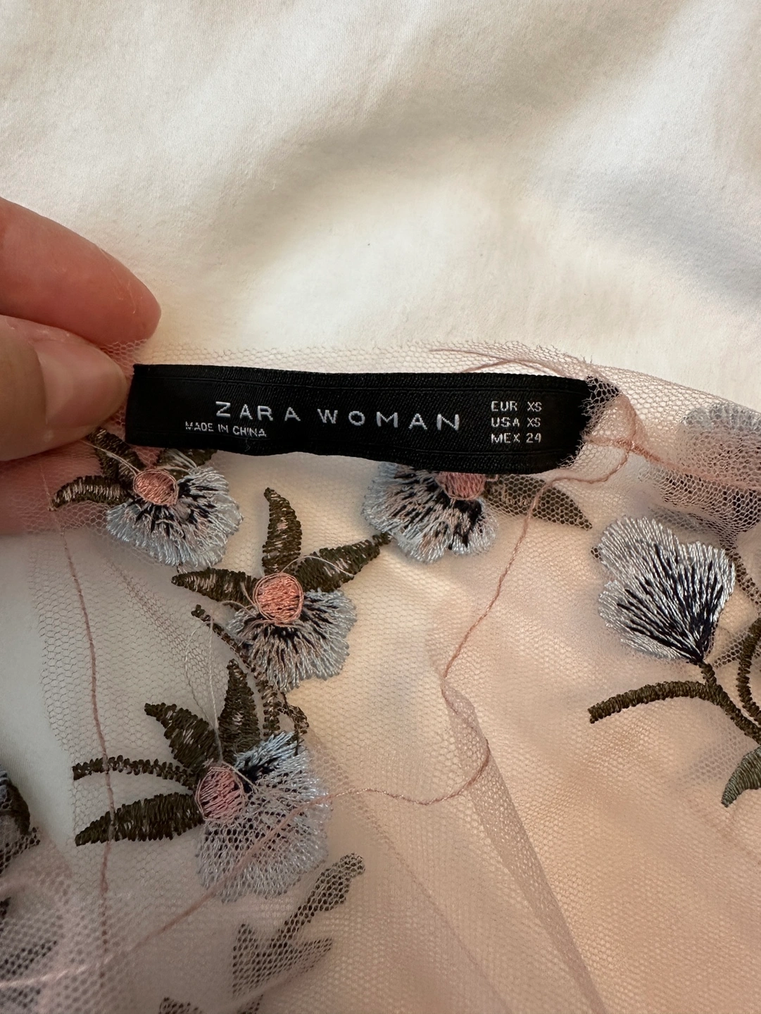 Excellent condition. Colour: Light Pink Fabric: Organza Floral pattern. Size: XS (im normally a s/m)