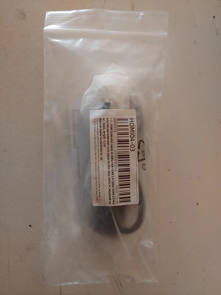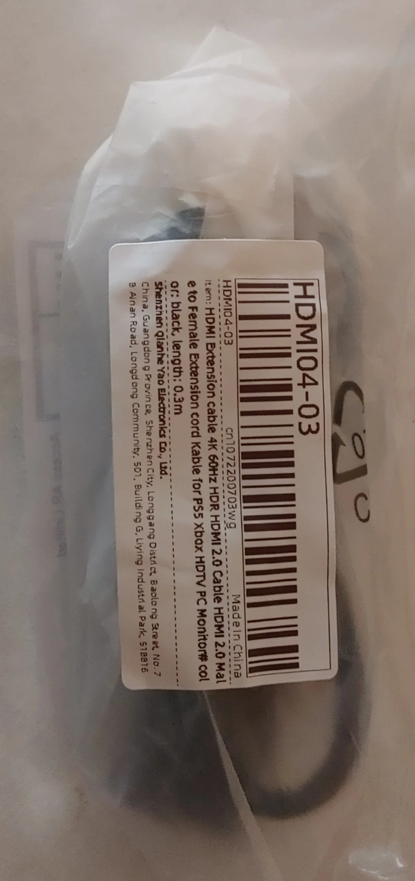 Male to female extension HDMI cable 0.3m (9 inches) in length.