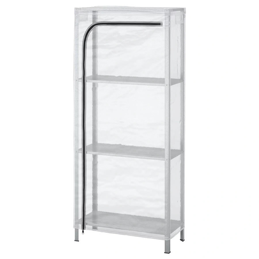 HYLLIS 2x Shelf unit, indoor/outdoor, 60x27x140 cm (23 5/8x10 5/8x55 1/8 ") Perfect for flower pots on balcony, indoor storage use in bathroom Sturdy but light weight and suitable for wet areas. With the cover you can transform your open shelf to enclosed storage solution. Perfect if you want to protect your things from dust! Check my other listing as well