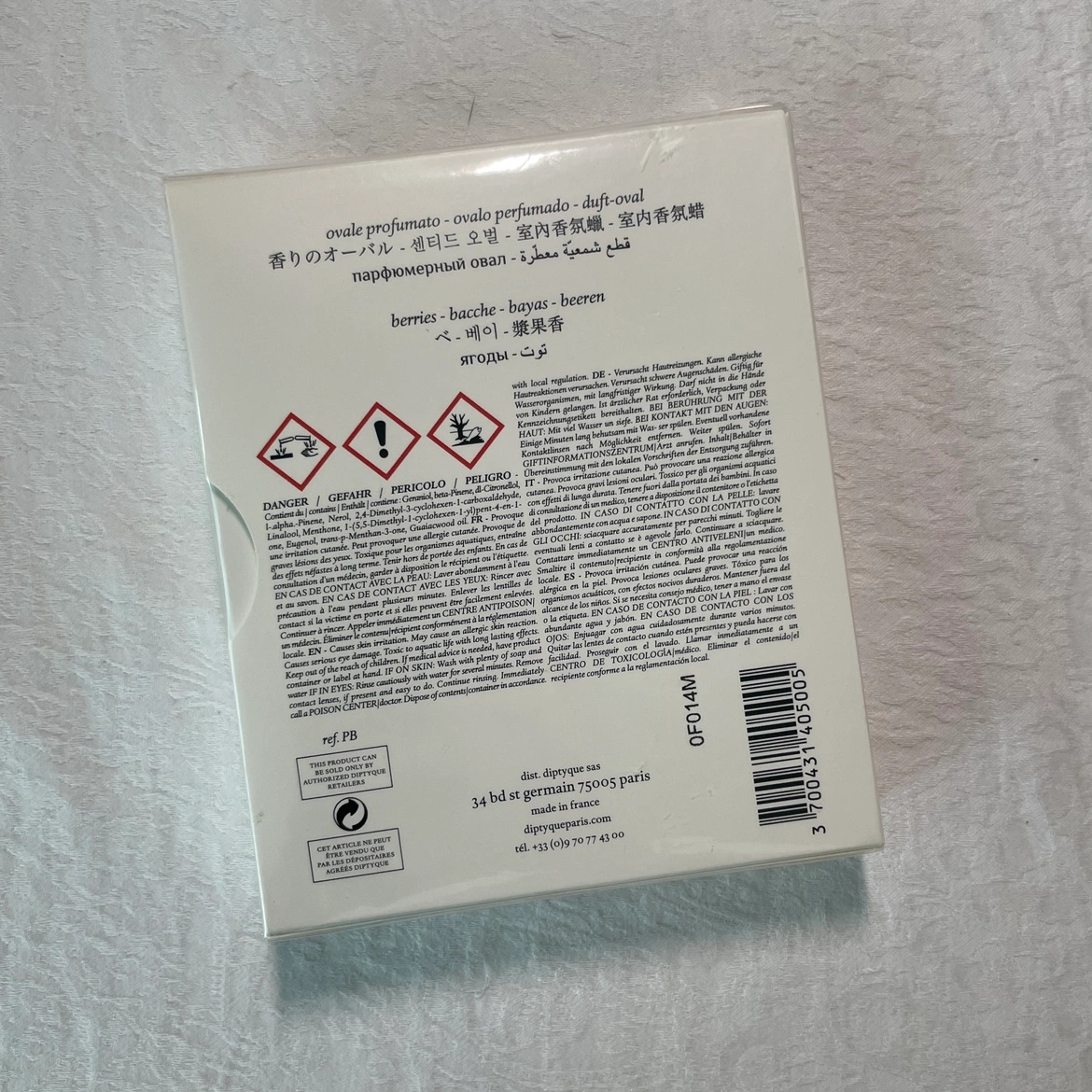 Diptyque Baies Scented Wax Oval New, seal unopened 35g Lasts pretty long. I put one in my closet quite a while ago and it's still potent. Retails for $81+tax ($91.50) No trades, Price is FIRM
