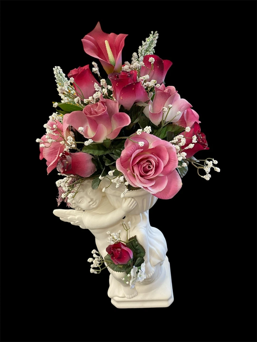 Perfect Christmas gift A beautiful angel vase holding a lovely bouquet of pink roses. This piece would make a charming addition to any room