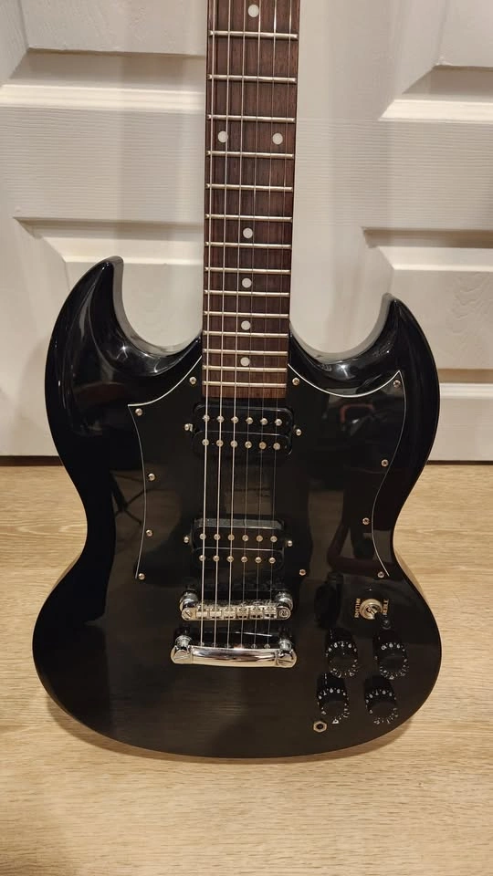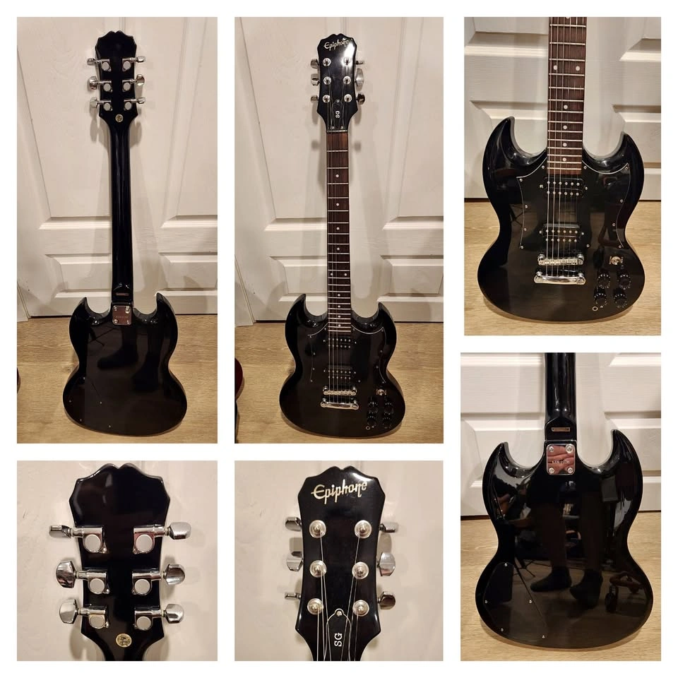 This SG guitar has maple neck, rosewood fretboard, bolt-on neck, two humbuckers pickups, tune-o-matic bridge, vol/tone controls, 3-way switch and matte black finish. I will adjust the relief of the neck and the string heights to maximize its playability. All of my guitars have warranty from me for one year from the date of purchase. These are some of my other instruments. I have 200+ guitars and basses and everything listed is available. Take a look https://www.guitar-toronto.com/guitars-bass-for-sale I am at Kennedy and Ellesmere, Toronto M1P2A1 is my postal code https://maps.app.goo.gl/dwCz68d9ETqSTQuo6 I also work in King City on regular school days if you choose to pick up from there.