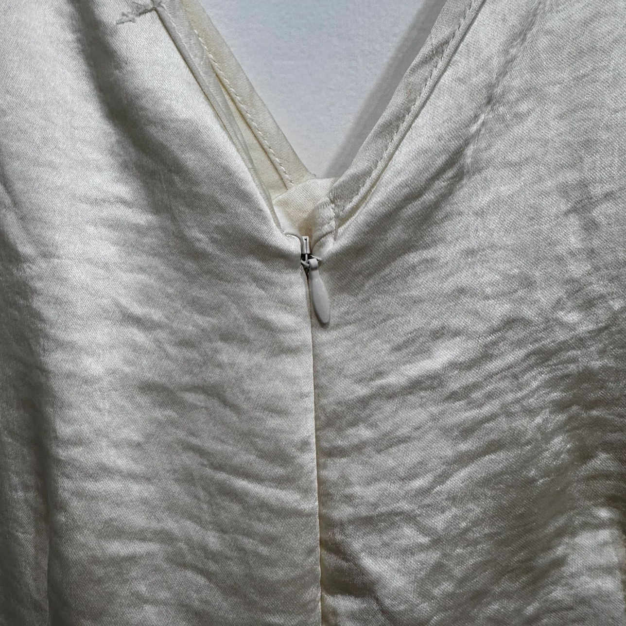 Relaxed fit Midi length V neckline Open back with tie Zipper opening to back Size large Length 51” Pit to pit approx 17.5” Waist 16.5” Sleeve (from neckline) 12.5”/ from pit 6” V dip 10”