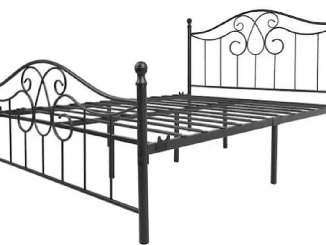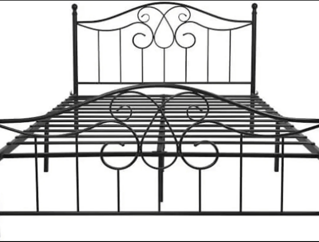 Metal queen size bed frame with headboard, purchased in February 2024. Easily dismantled and transported in a car. Includes all spare parts and comes with the original packaging. Great condition and perfect for a quick setup in your home. Don’t miss out!