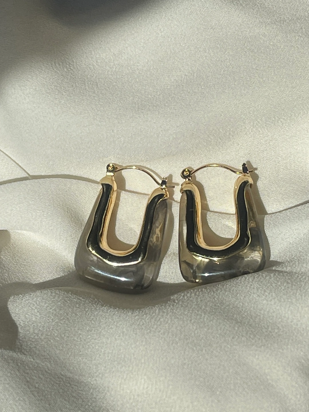 Brand new resin earrings Color: gray Material: resin and zinc alloy Dimensions: 3.1 cm x 2.2 cm ( Height x width) Pick-up: 1145 Logan avenue, Toronto